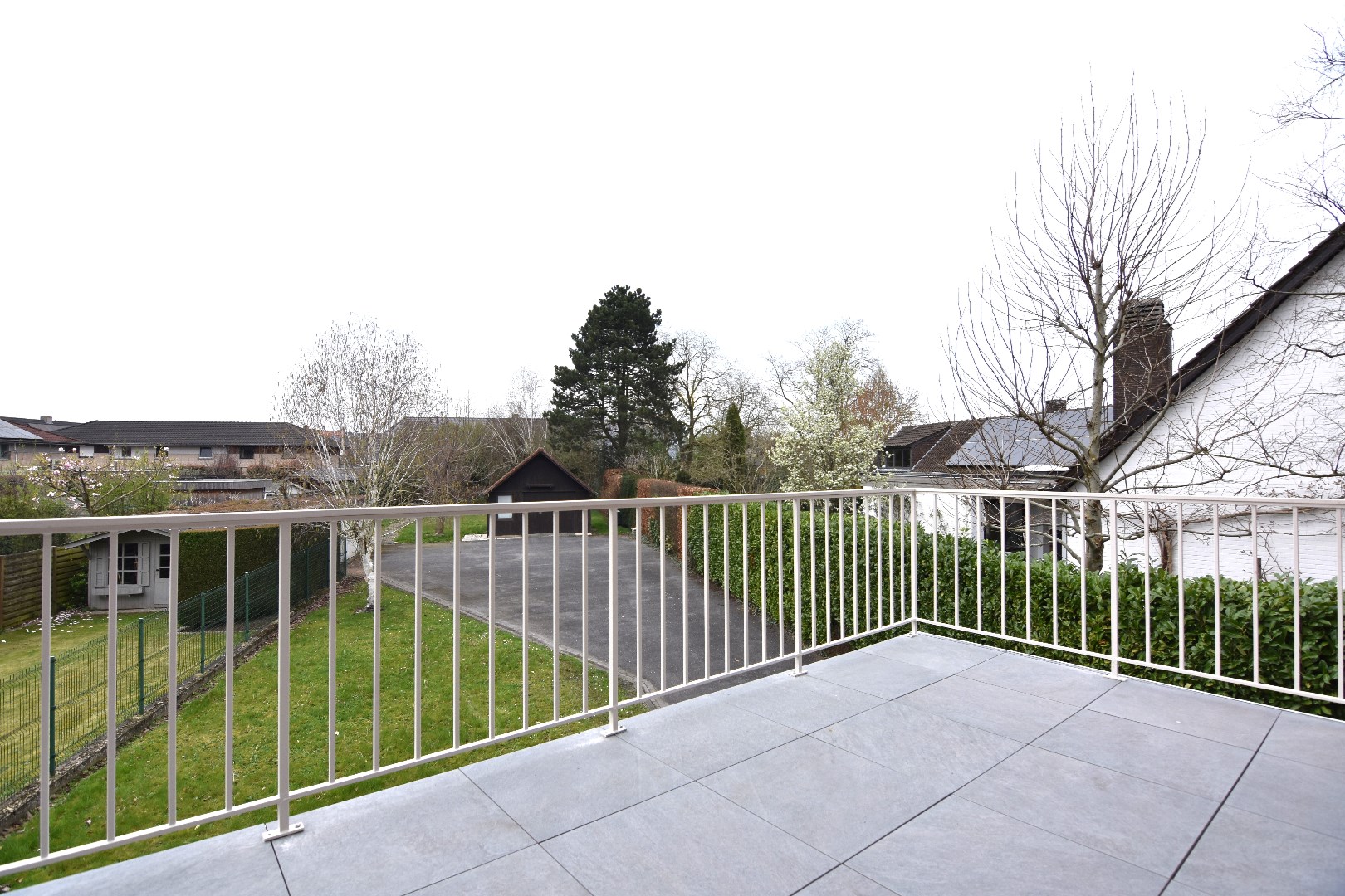 Exterieur: zeer ruim en zongericht terras dat uitkijkt op de tuin - achterliggende garagebox