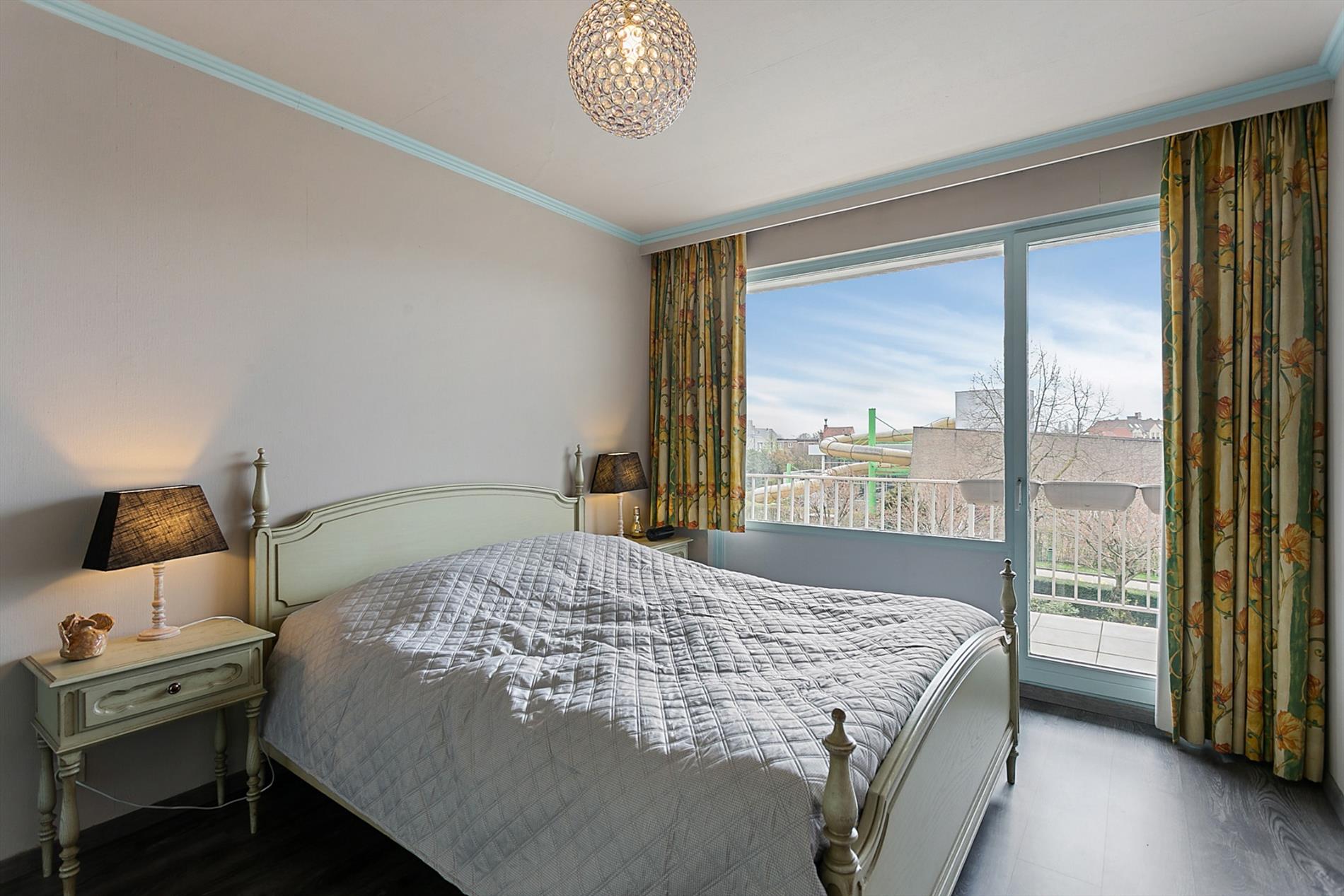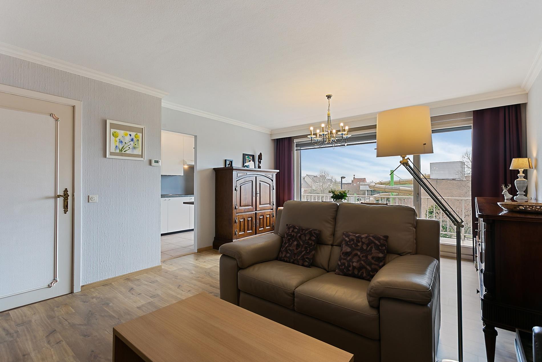 Indeling: inkomhal - woonkamer (ruim en lichtrijk, rechtstreekse toegang naar terras en voorzien van elektrische screen) - keuken met bijhorende berging - nachthal - toilet - slaapkamer 1/bureau- slaapkamer 2 - badkamer (ligbad & wasplaats) - ruim en zuidgericht terras (+ zonneluifel) met mooi uitzicht.