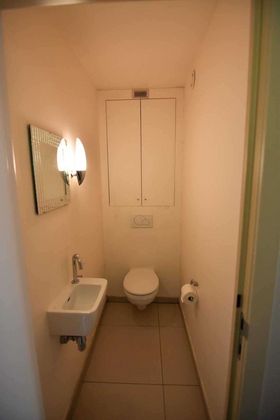 Ze bestaat uit een woonkamer met balkon (straatzijde) en een open keuken (voorzien van een koelkast en elektrisch fornuis). Verder is er een kleine berging (voorziening wasmachine), een toilet en de slaapkamer met aanpalende badkamer (ligbad, dubbele wastafel). Er is nog een balkon, toegankelijk vanuit de slaapkamer.