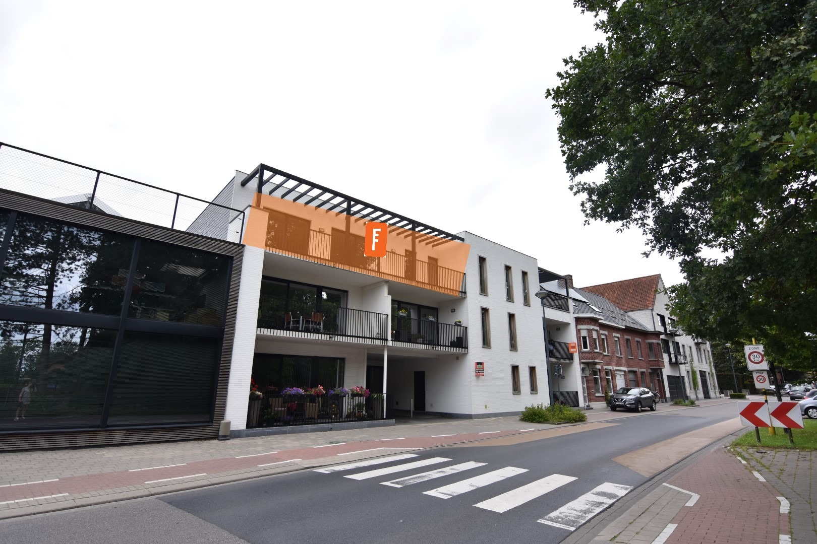 Pluspunt is het extra grote zuidgerichte terras gelegen aan de voorzijde van het gebouw dat toegankelijk is via één slaapkamer alsook de leefruimte.