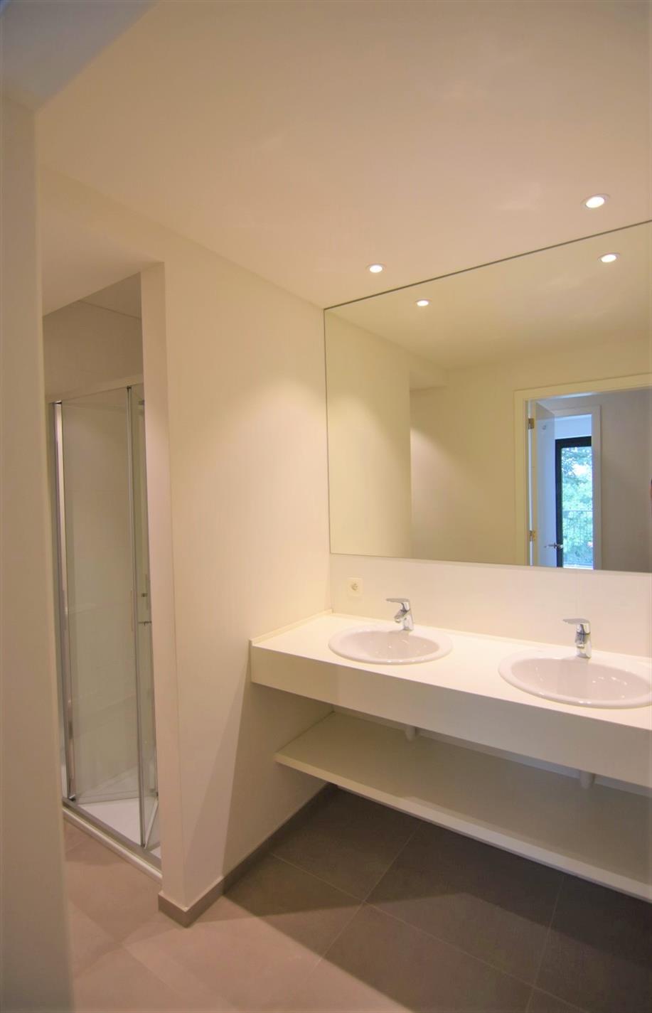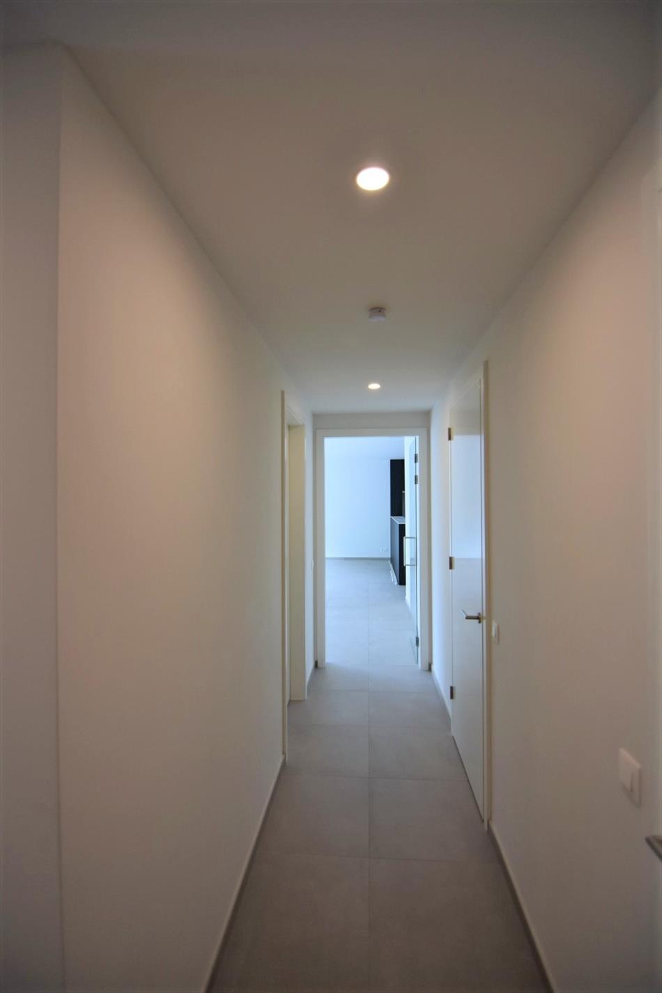 Inkomhal - toilet - slaapkamer 1 - slaapkamer 2 - badkamer (dubbele wastafel - douche) - lichtrijke leefruimte met open ingerichte keuken en aanpalende berging/wasplaats.