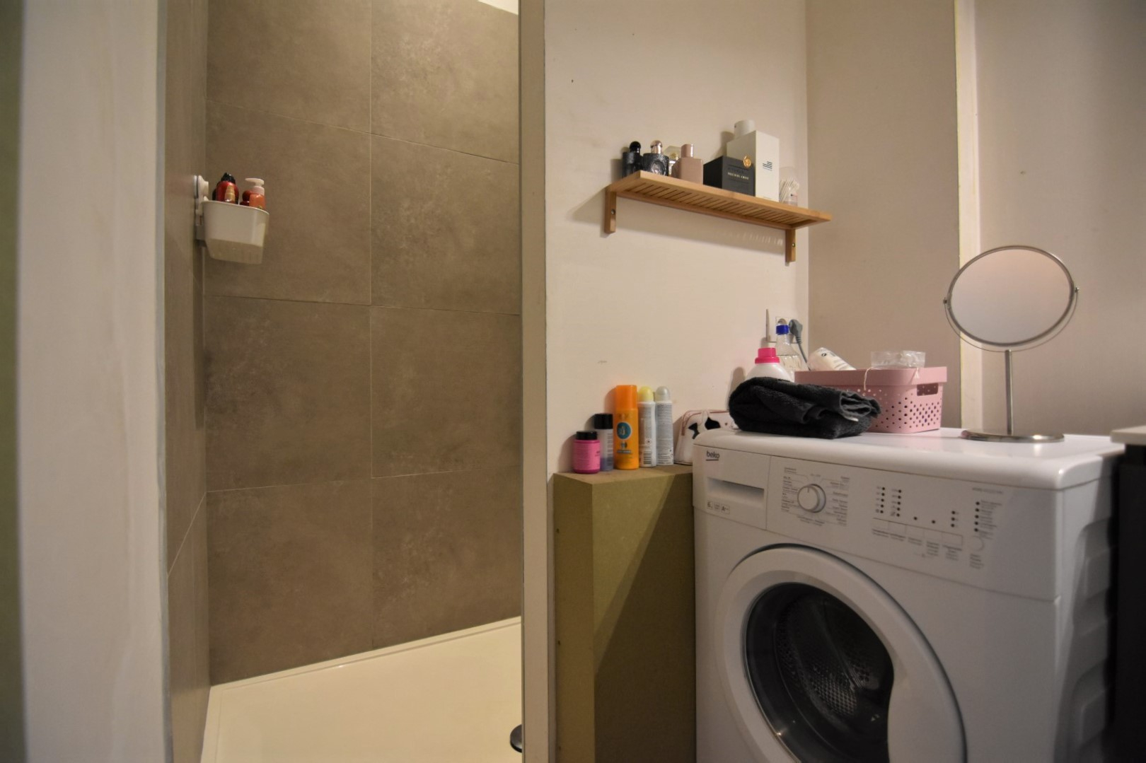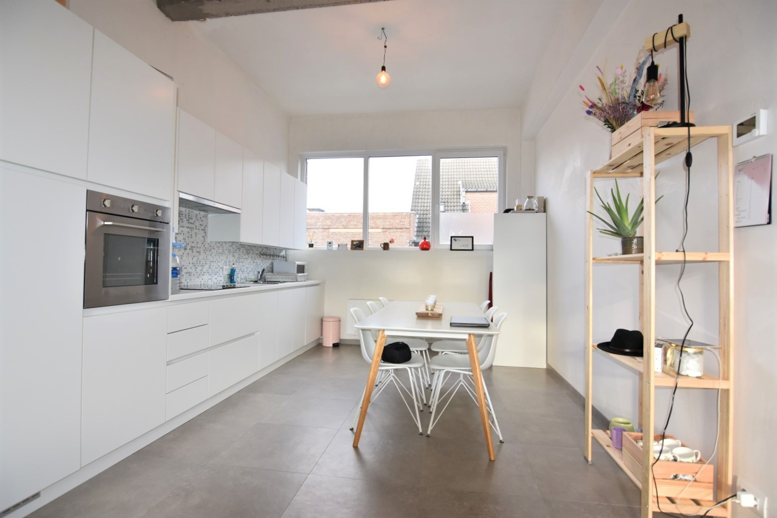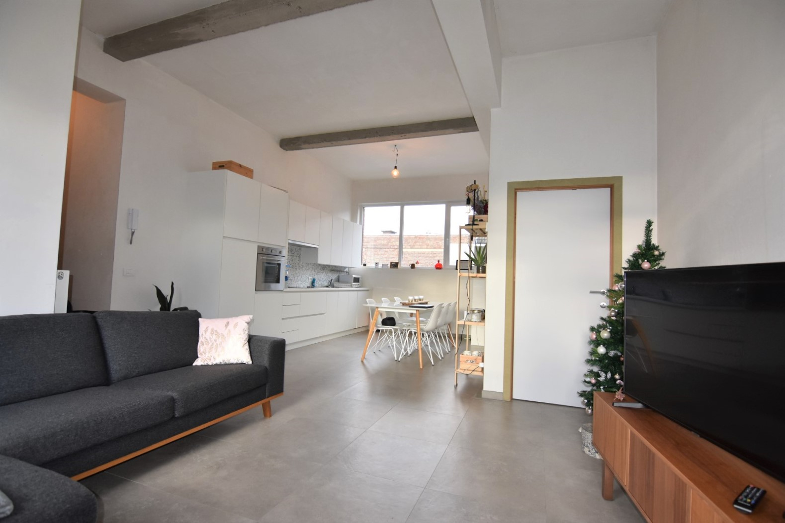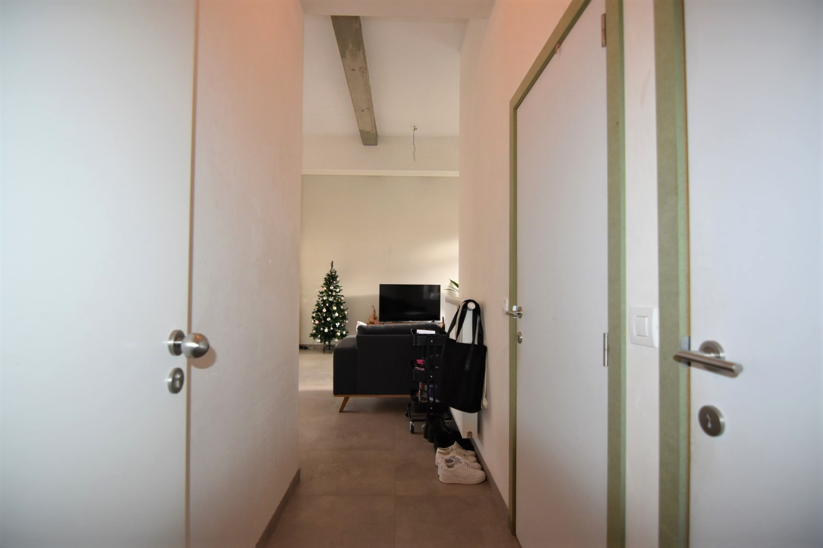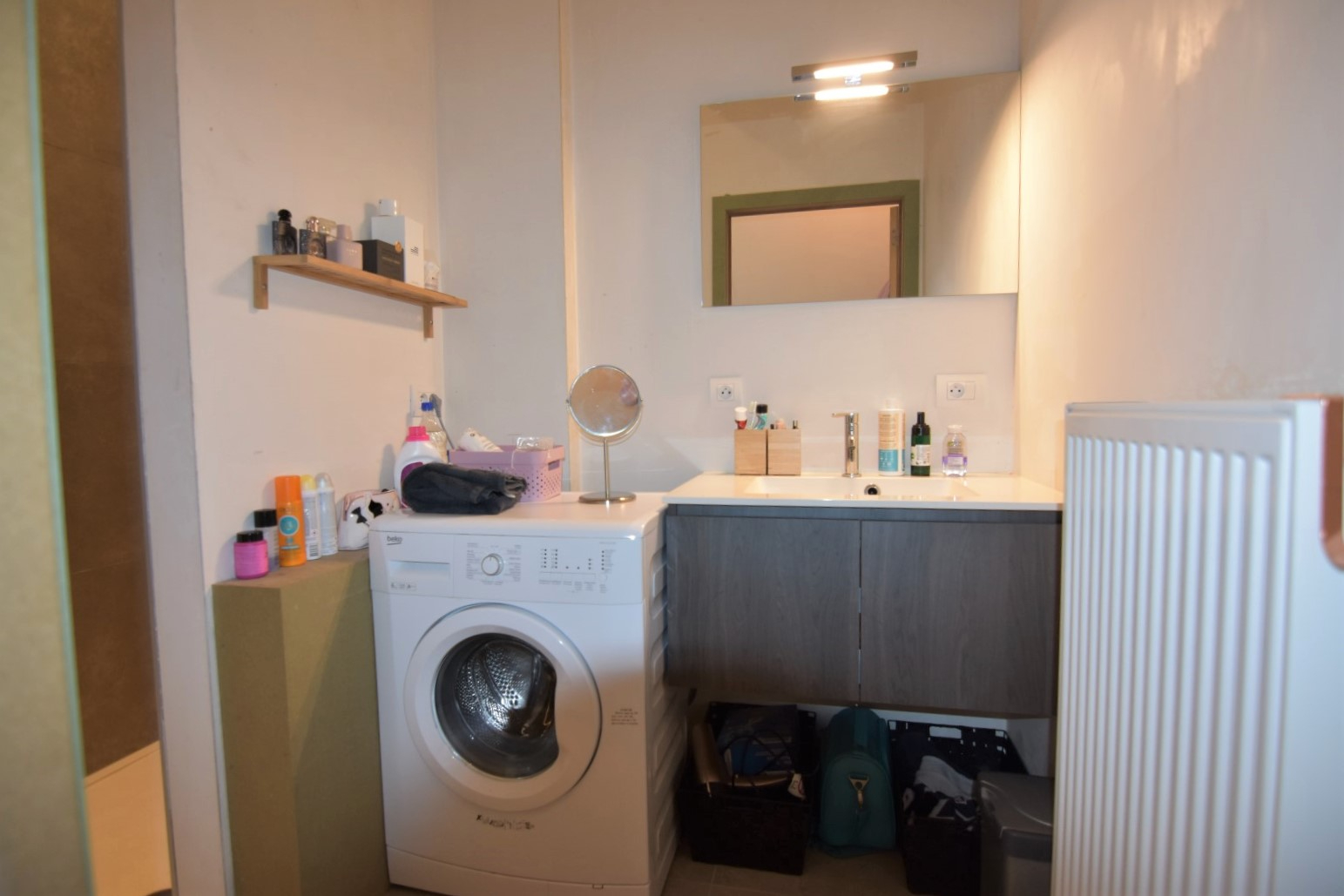 Indeling: inkomhal - toilet - badkamer (wasplaats - wastafel - inloopdouche) - lichtrijke leefruimte met gezellige zitplaats - open en volledig geïnstalleerde keuken met eetplaats - ruime slaapkamer.