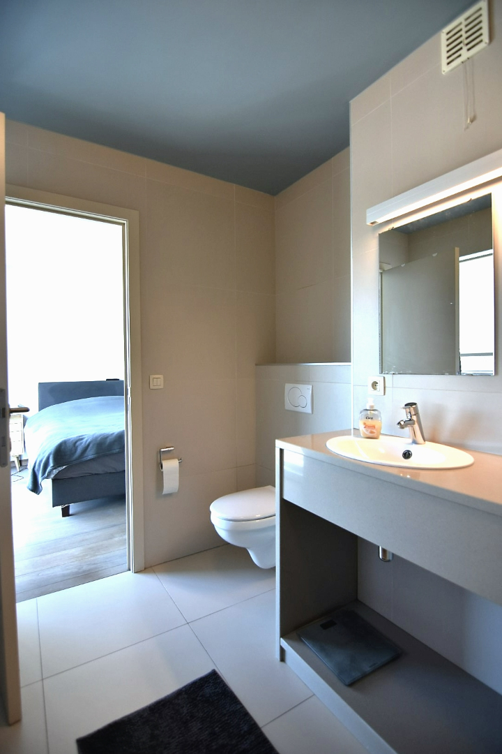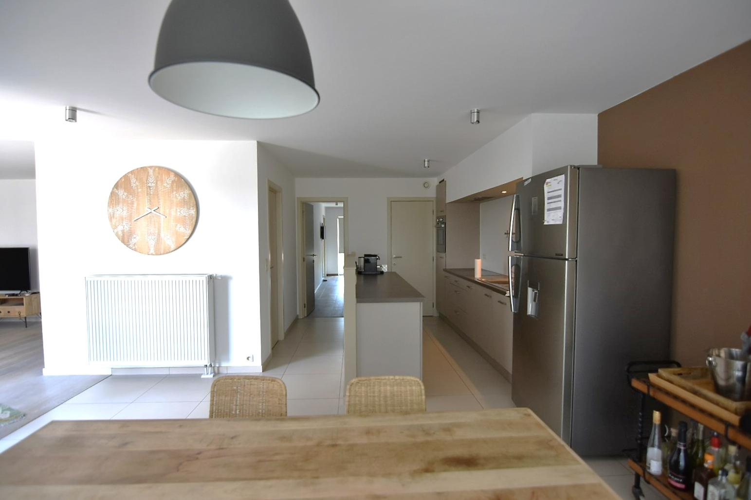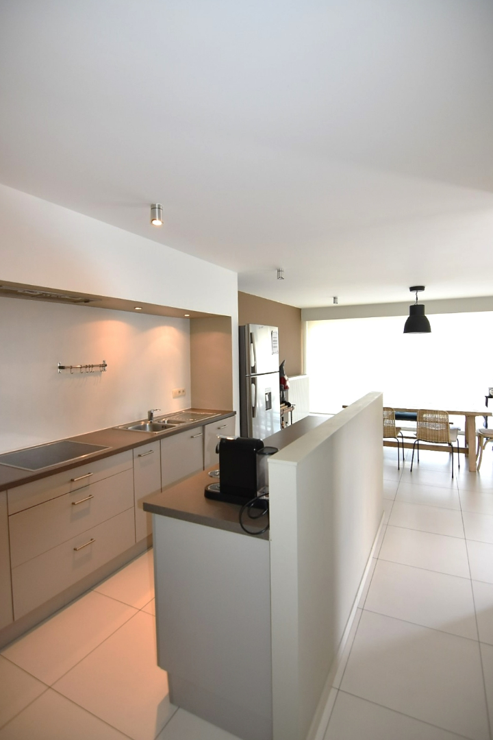 Verder is er een lichtrijke eetplaats met ingerichte open keuken. Paland aan de keuken is er een praktische berging alsook een afzonderlijke plaats voor wasmachine/droogkast. De grootste slaapkamer is voorzien van een afzonderlijke dressing alsook een privé badkamer met toilet, enkele wastafel en ligbad. Vanuit deze slaapkamer is er ook nog toegang tot een balkon met avondzon.