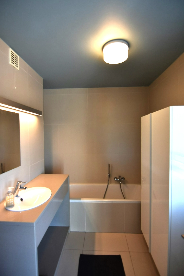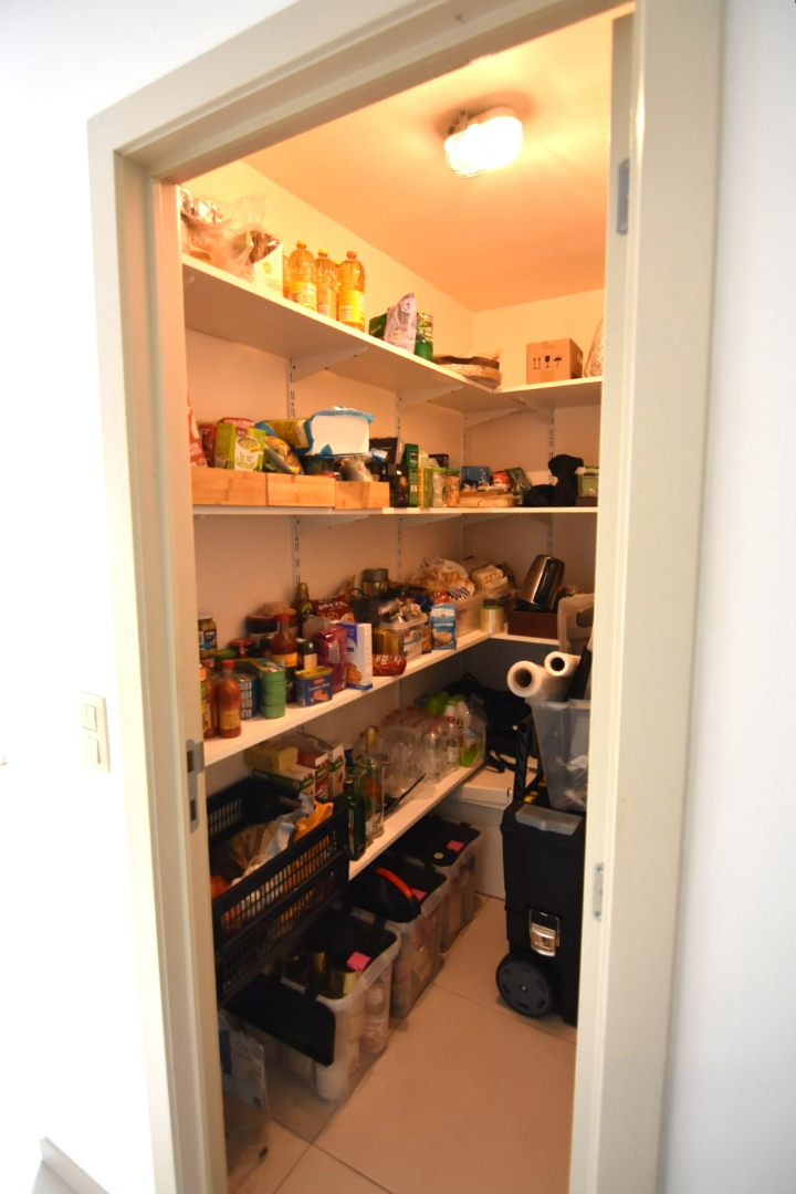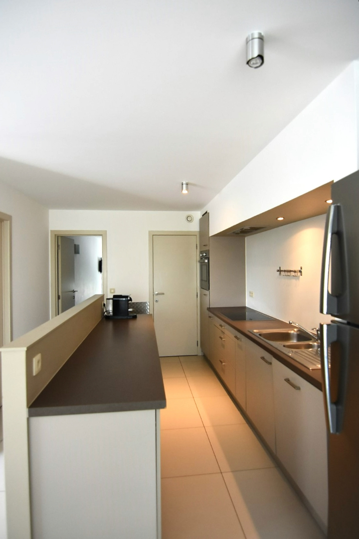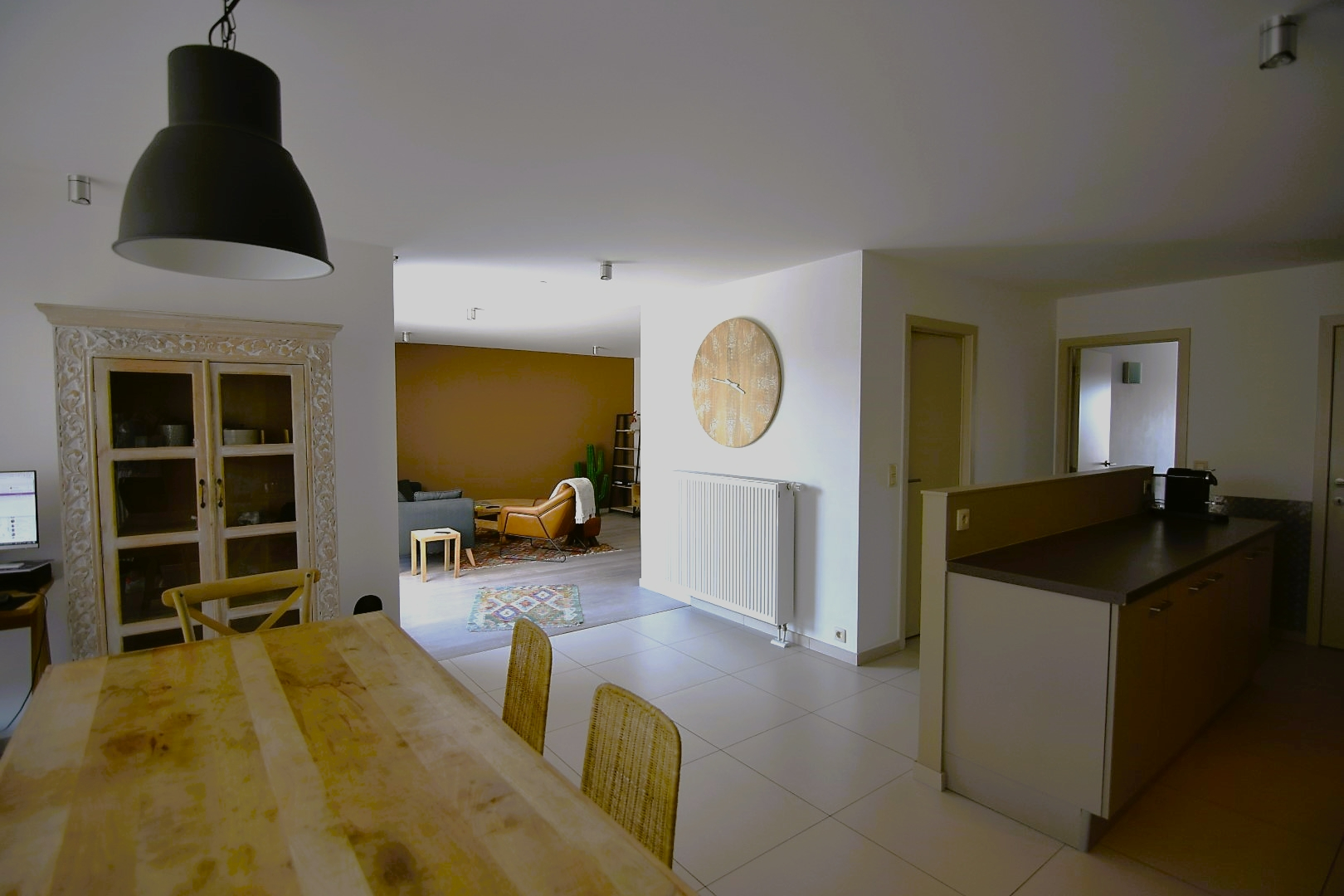 Verder is er een lichtrijke eetplaats met ingerichte open keuken. Paland aan de keuken is er een praktische berging alsook een afzonderlijke plaats voor wasmachine/droogkast. De grootste slaapkamer is voorzien van een afzonderlijke dressing alsook een privé badkamer met toilet, enkele wastafel en ligbad. Vanuit deze slaapkamer is er ook nog toegang tot een balkon met avondzon.