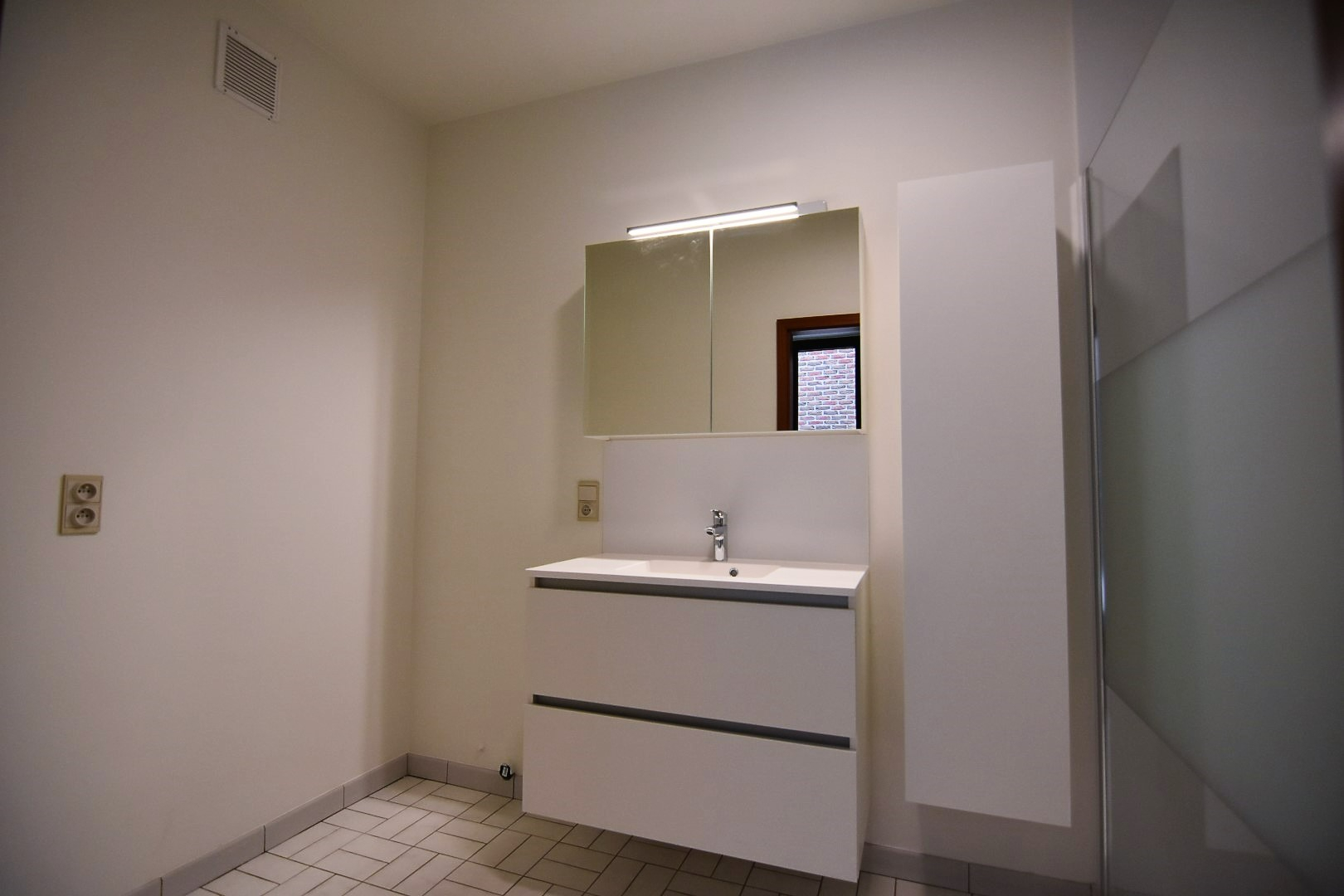 Indeling: inkomhal - grote slaapkamer - middelgrote slaapkamer - toilet - badkamer (met inloopdouche) - binnenkoer - berging/wasplaats - ingerichte keuken - lichtrijke woonkamer met smal terras.