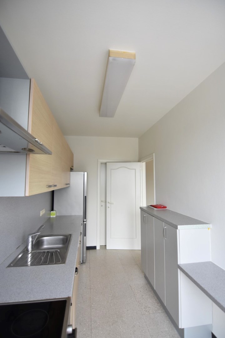 Dit ruime appartement bevindt zich op de bovenste verdieping en biedt een aangenaam zicht op de omliggende winkelstraten. Ze is onmiddellijk beschikbaar en als volgt ingedeeld: