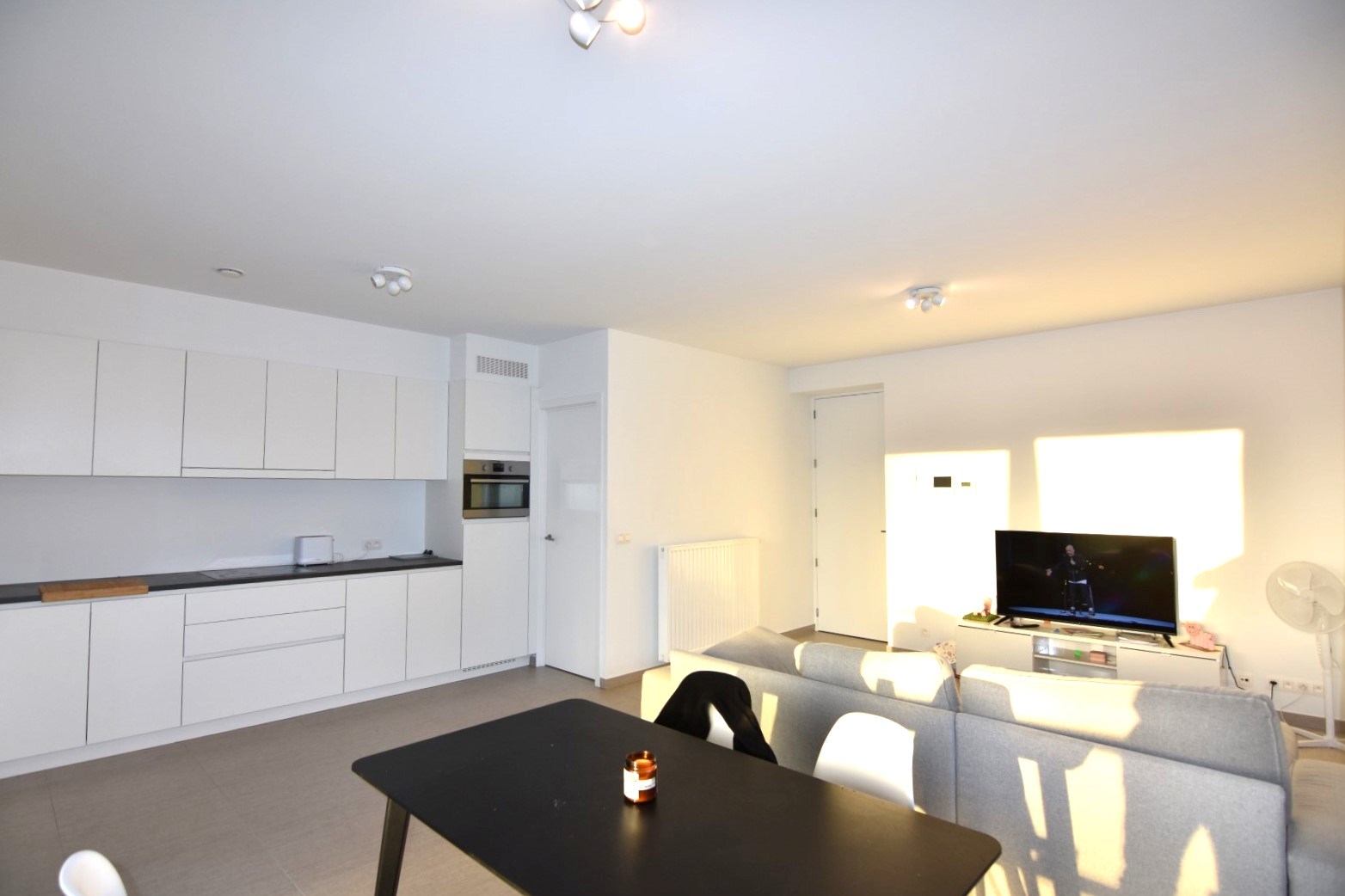 Indeling: inkomhal - slaapkamer 1 - slaapkamer 2 - toilet - badkamer (met inloopdouche) - lichtrijke woonkamer met open ingerichte keuken - berging/wasplaats - ruim hoekterras, zongericht (ZW - 12m²).