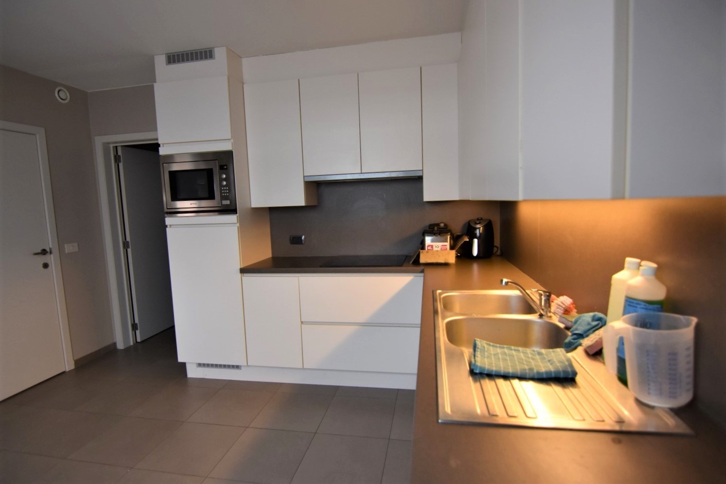 In deze woongelegenheid vinden we een inkomhal - toilet - badkamer met ligbad/douche/wastafel - slaapkamer 1 - zuid gericht terrasje - woonkamer - eetplaats - mooie ingerichte keuken - technische bergplaats - slaapkamer 2 inclusief wastafel en douchecabine.