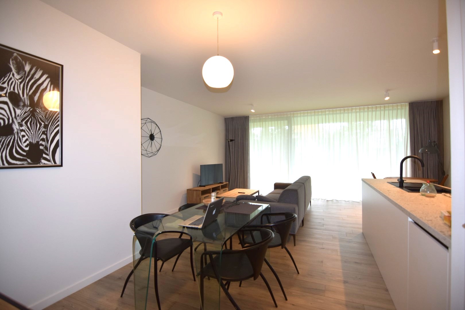 INDELING: inkomhal met vestiaire en toilet - ruime slaapkamer - badkamer (oa. inloopdouche) - berging + wasplaats - heerlijke, lichtrijke leefruimte met magnifiek zicht op het terras en de groene tuin - luxueuze open keuken (volledig ingericht met oa. vaatwas, combi-oven, steamer, ....) - geweldig terras.