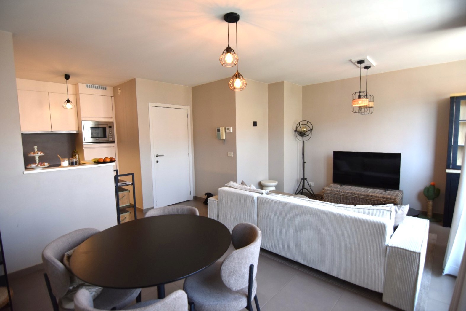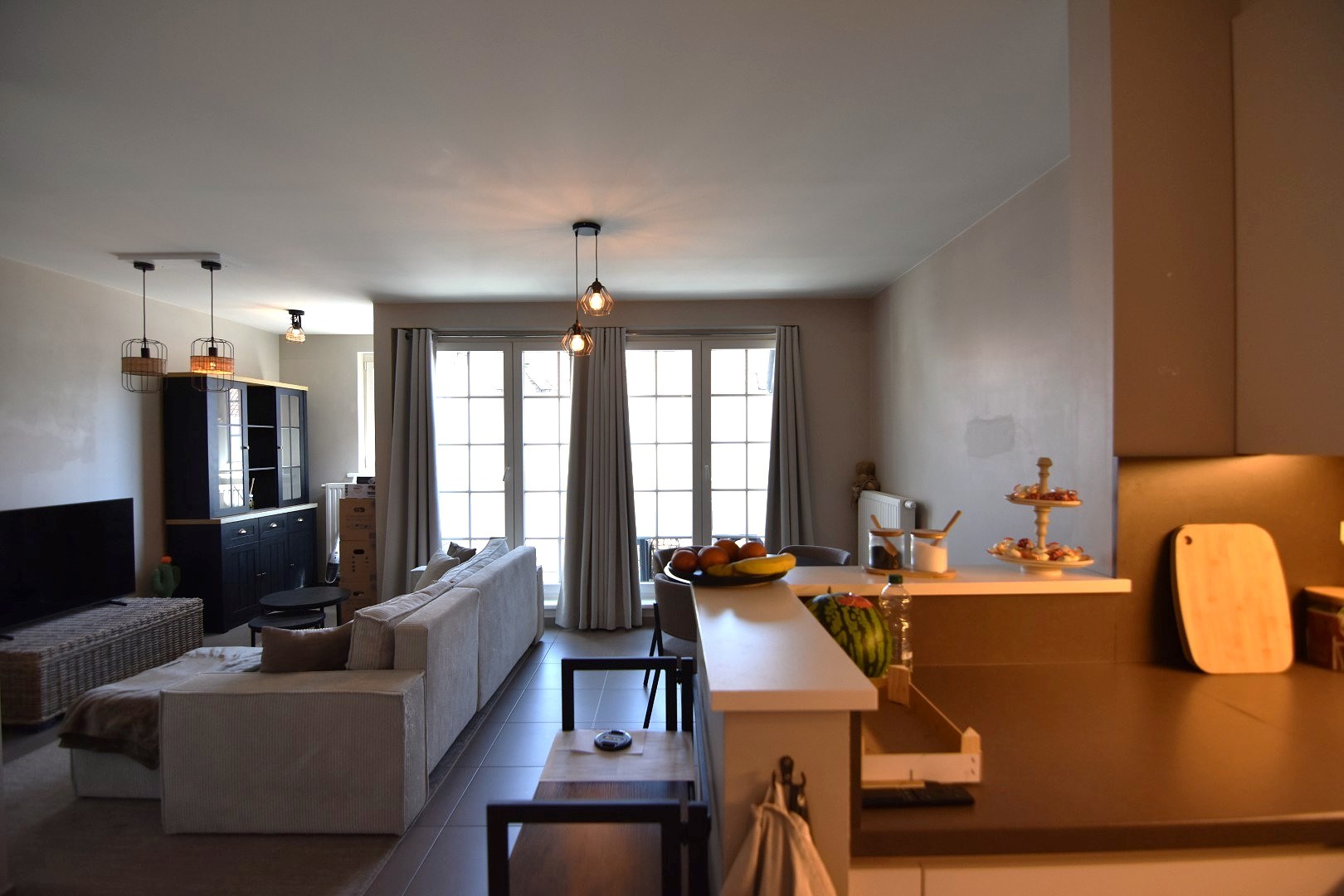 inkomhal - berging - leefruimte met open ingerichte keuken (vaatwas, koelkast, combi oven, elektrische fornuis, dampkap) - balkon - toilet - slaapkamer 1 - slaapkamer 2/bureau/dressing/hobbykamer - badkamer met ligbad, dubbele wastafel, douche en aansluiting voor de wasmachine.