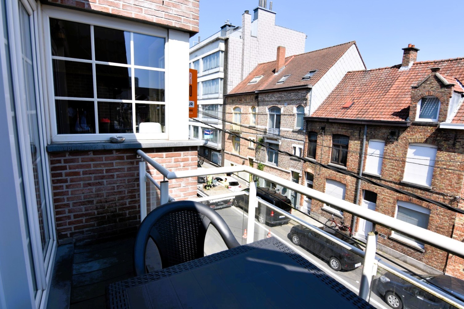 Er is een privé gelijkvloerse (fietsen)berging inbegrepen. Parkeren kan vlot in de straat.