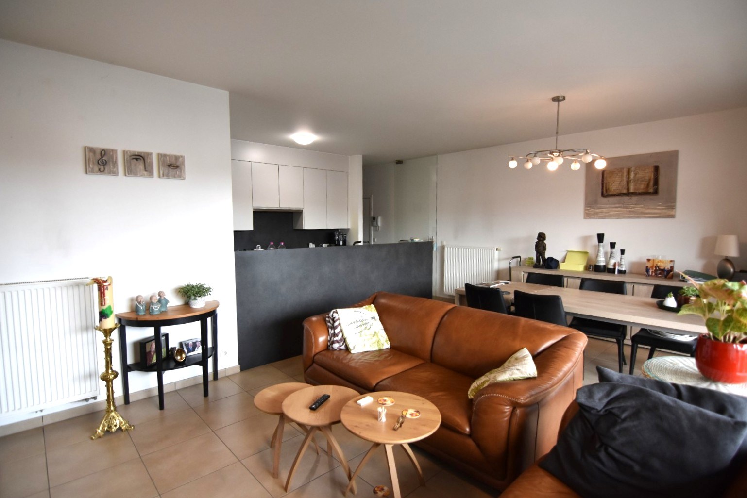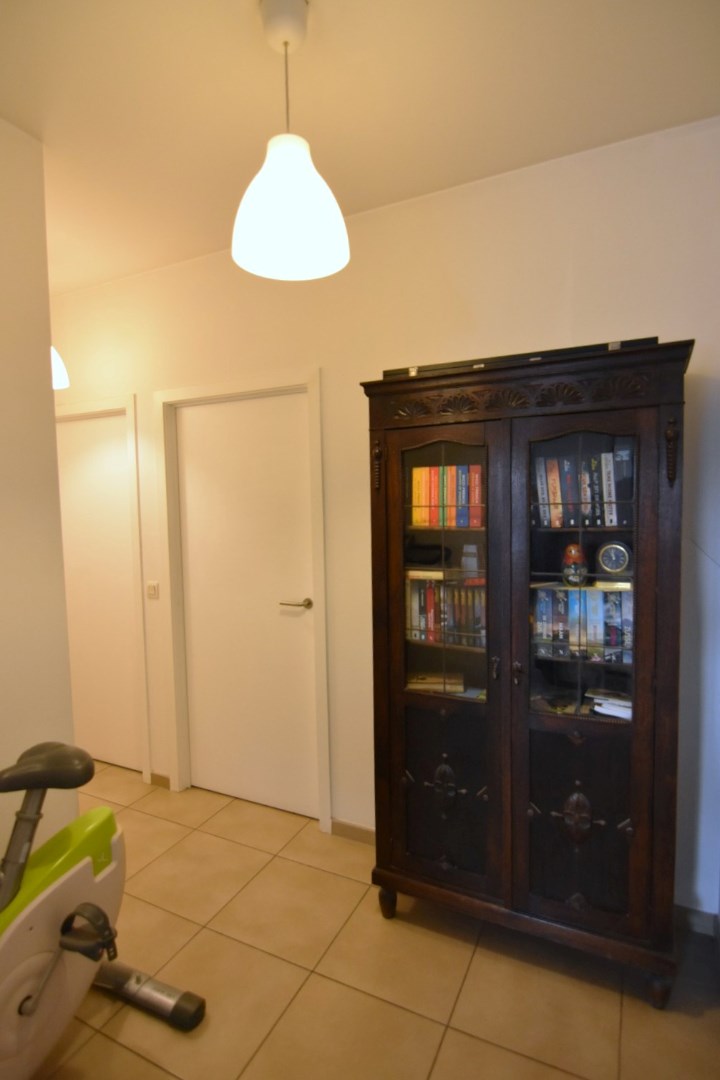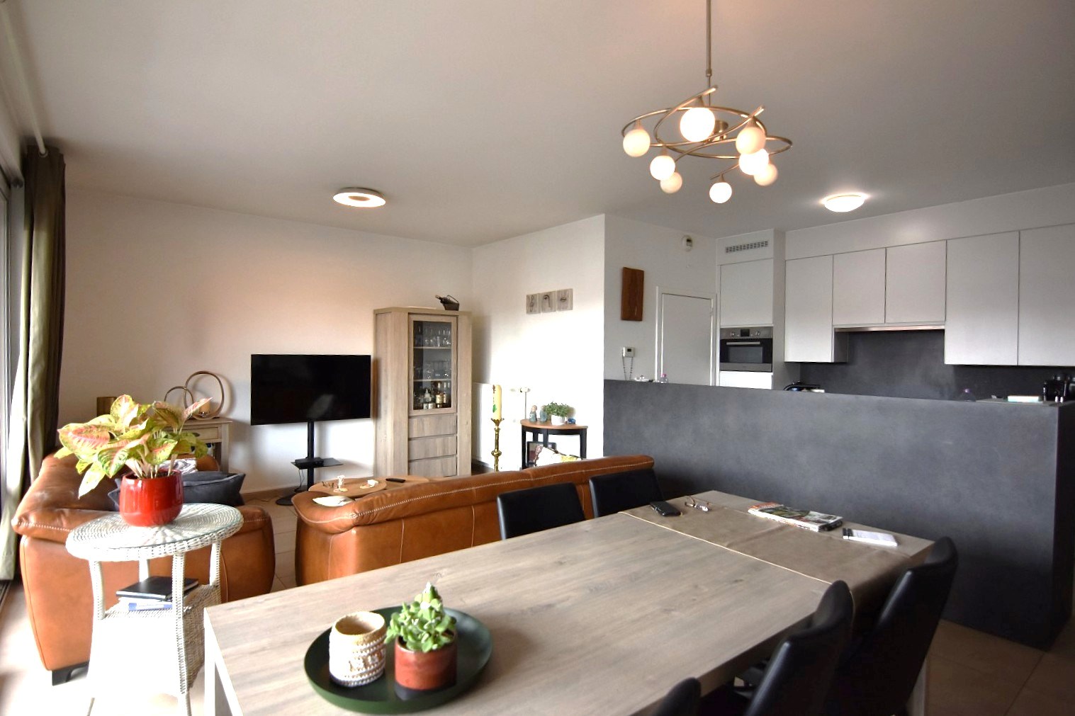 Indeling: hal, (glazen deur naar living!), toilet, gezellige woonkamer, ruim overdekt terras, moderne, open keuken (alle toestellen), aanpalende berging/wasplaats, , slaapkamer 1, slaapkamer 2, grote badkamer.