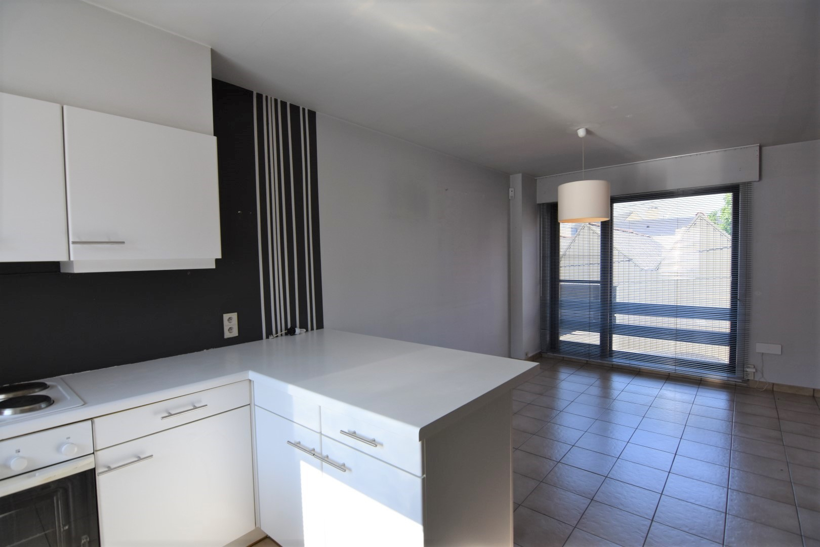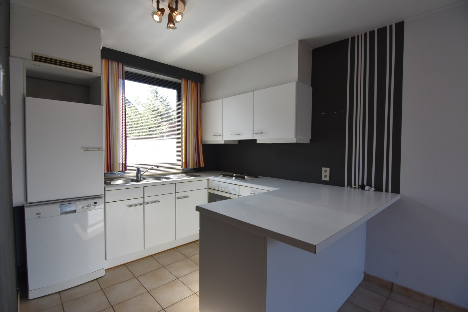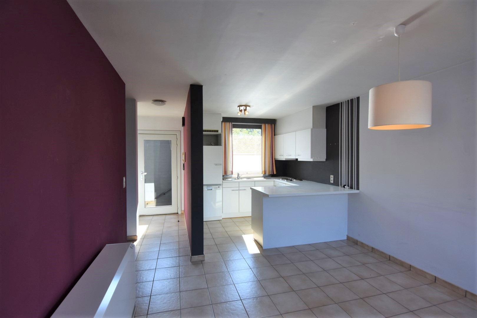 zongericht koertje - inkomhal met toilet - lichtrijke woonkamer - open keuken (koelkast - vaatwas - elektrisch fornuis - heteluchtoven) met eetplaats - trap