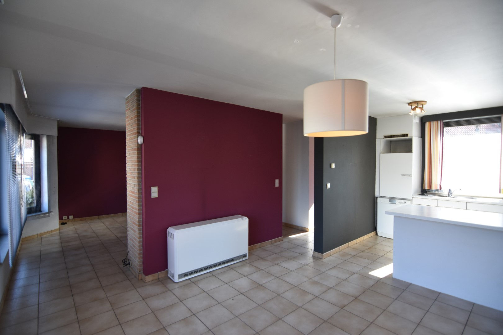 De woonst wordt elektrisch verwarmd (recent vernieuwde accumulatoren in woonkamer).