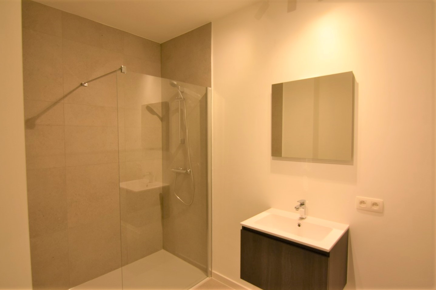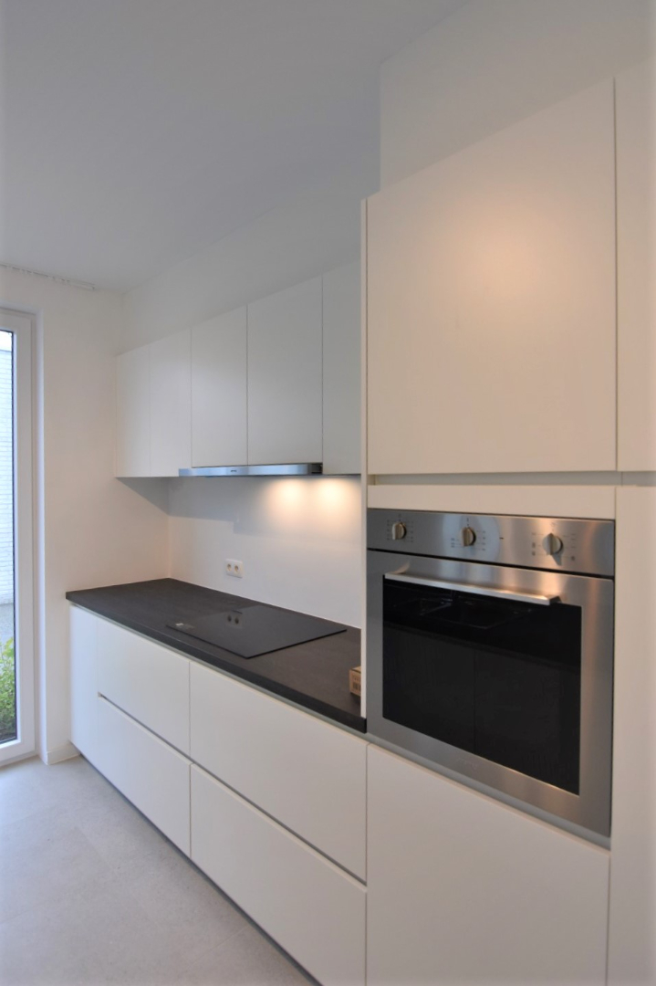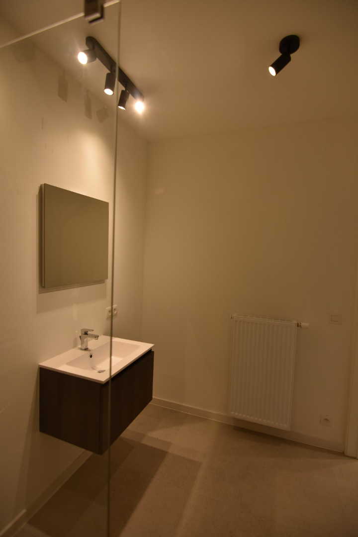 Heel gezellig nieuw appartement, eerste bewoning, verlichting en gordijnrails reeds aanwezig! Maandelijks voorschot syndic kosten: 40 euro