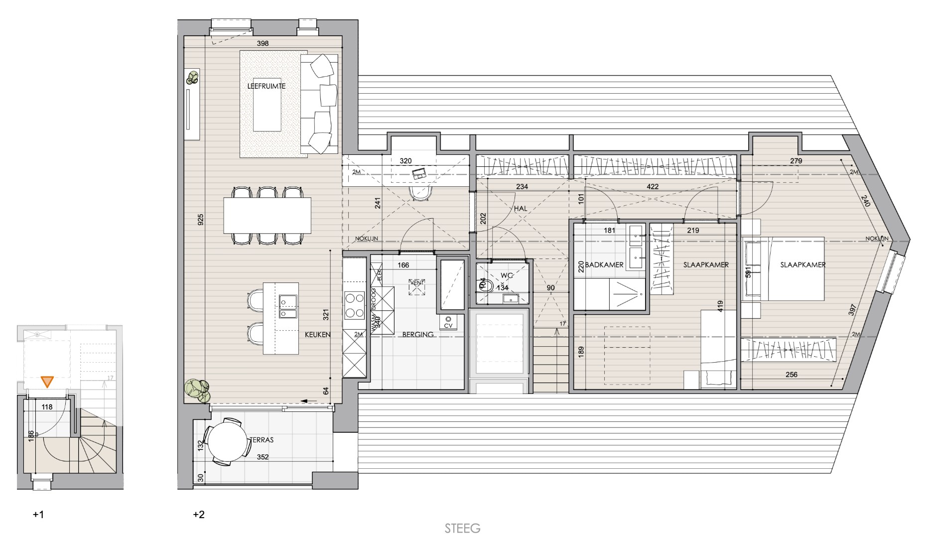 Lichtrijk dakappartement - 2 slaapkamers - ondergrondse parking