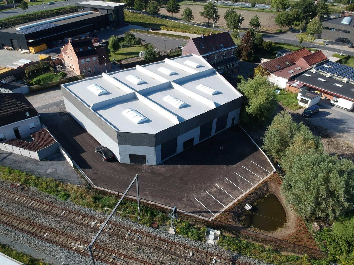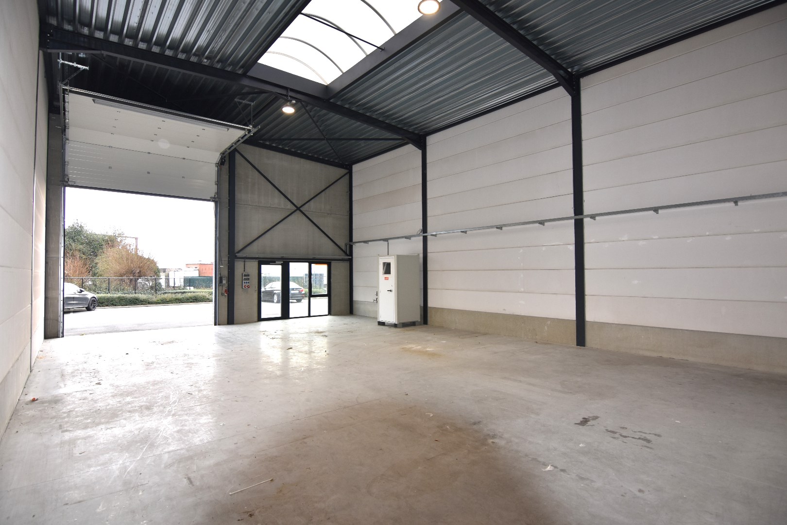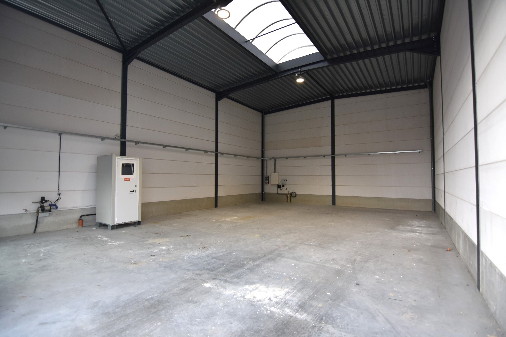 Afgewerkt met staalstructuur en silex panelen. Brandklasse C. Toegankelijk via een automatische sectionaalpoort (4 m B x 4,2 m H) en afzonderlijke met deur + kantelraam. Verder is de loods voorzien van een lichtstraat met rookkoepel. Gepolierde betonvloer. Breedte 10m x diepte 15m. Vrije hoogte: ca. 6m. ALU schrijnwerk, elektriciteit 230V en drijfkracht 400V, aansluiting Proximus.