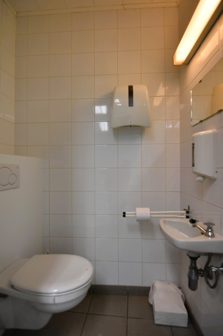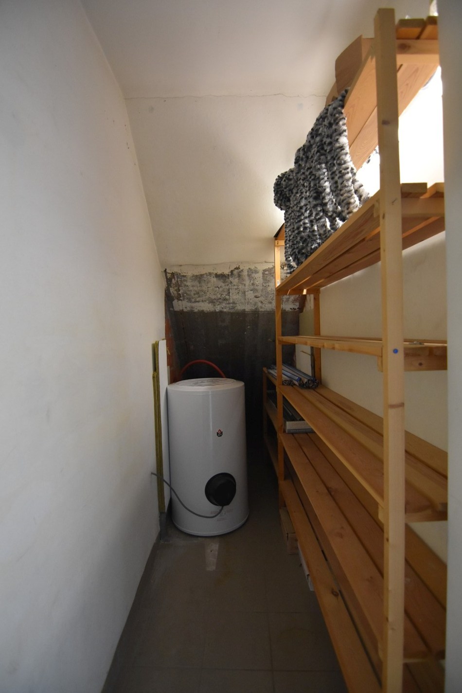 Ze heeft een totale benutbare oppervlakte van 90m² en bestaat uit één grote ruimte (36m²) met afzonderlijk toilet en berging, aansluitend nog een ruimte van 12m² die toegang geeft tot een ingerichte keuken met eetmogelijkheid. Van hieruit is er een terras (+- 6m²) toegankelijk, alsook een extra bureau of berging van 7,5m². Als extra is er nog een (oude, maar bruikbare) badkamer.