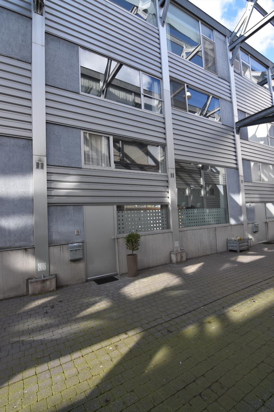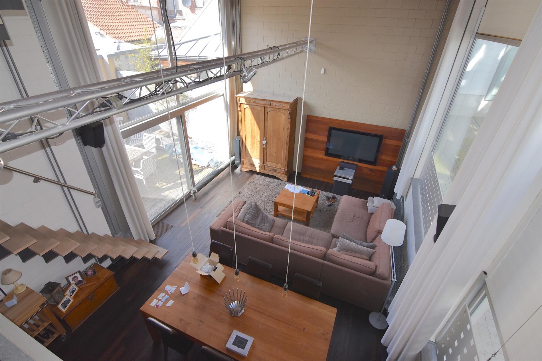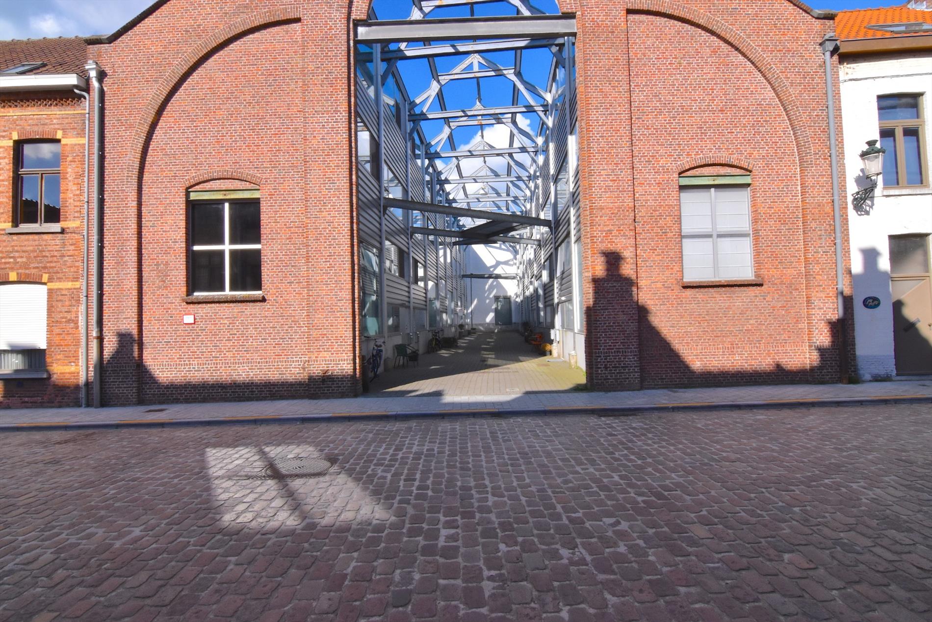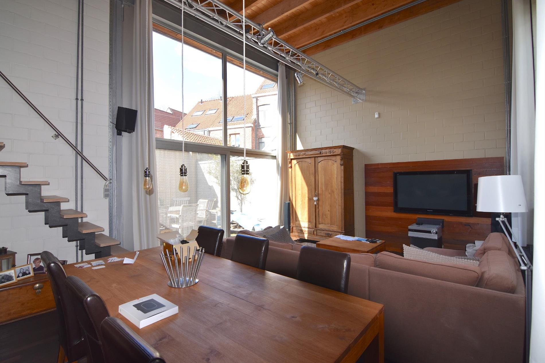 Instapklare loft in het centrum van Brugge met zonnig stadsterras. Volgende woonindeling: inkomhal met gastentoilet en vestiaire, lichtrijke leefruimte, open ingerichte eetkeuken met aansluitend een ruime berging.