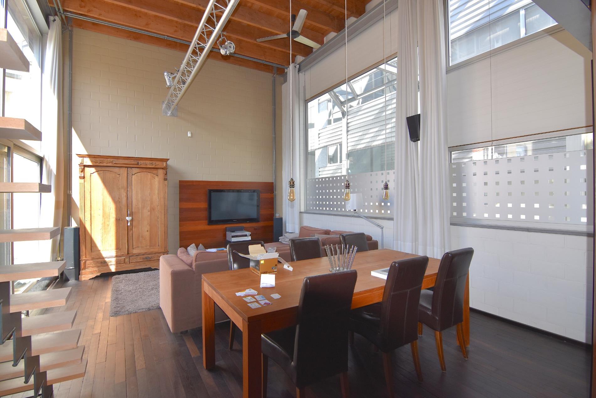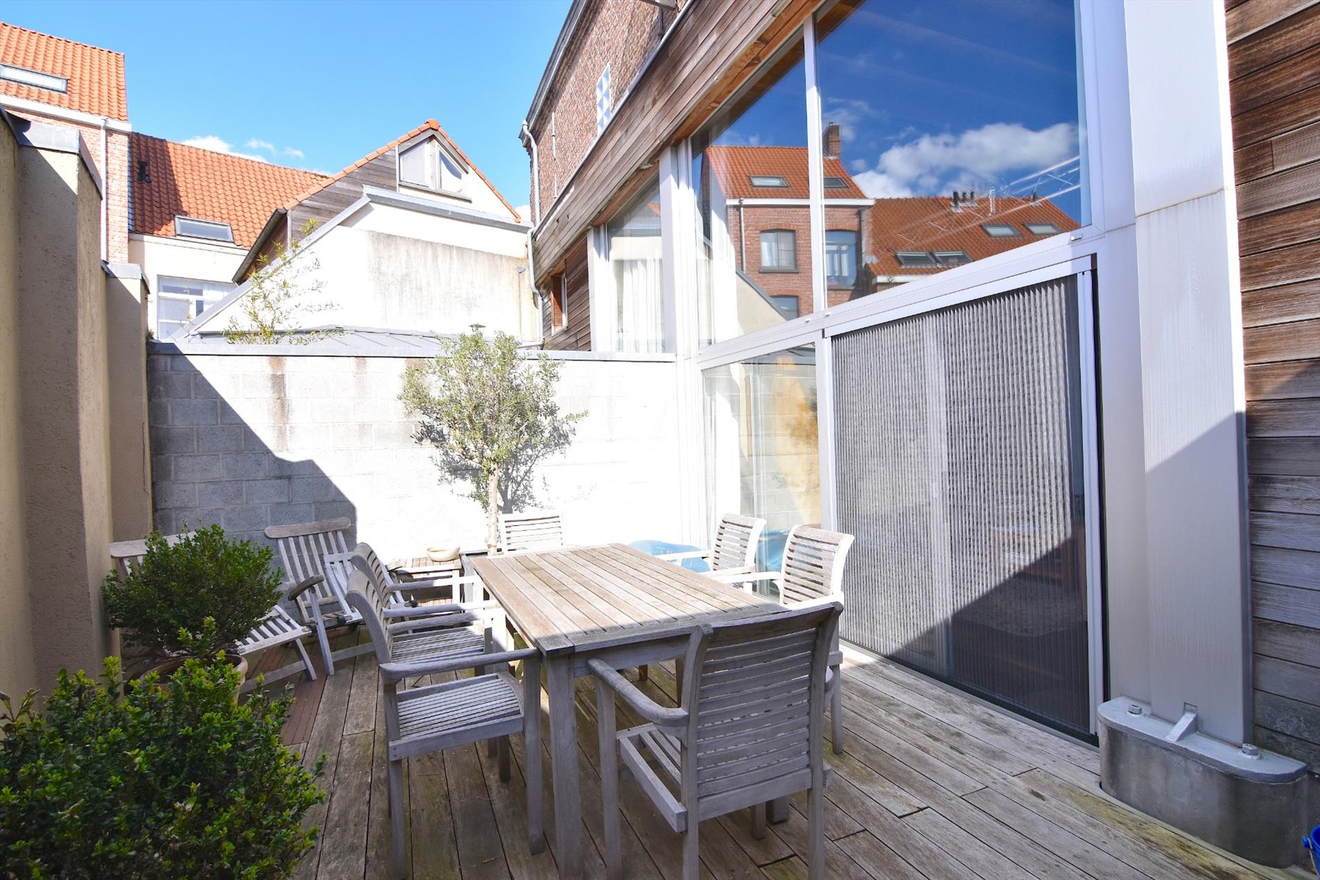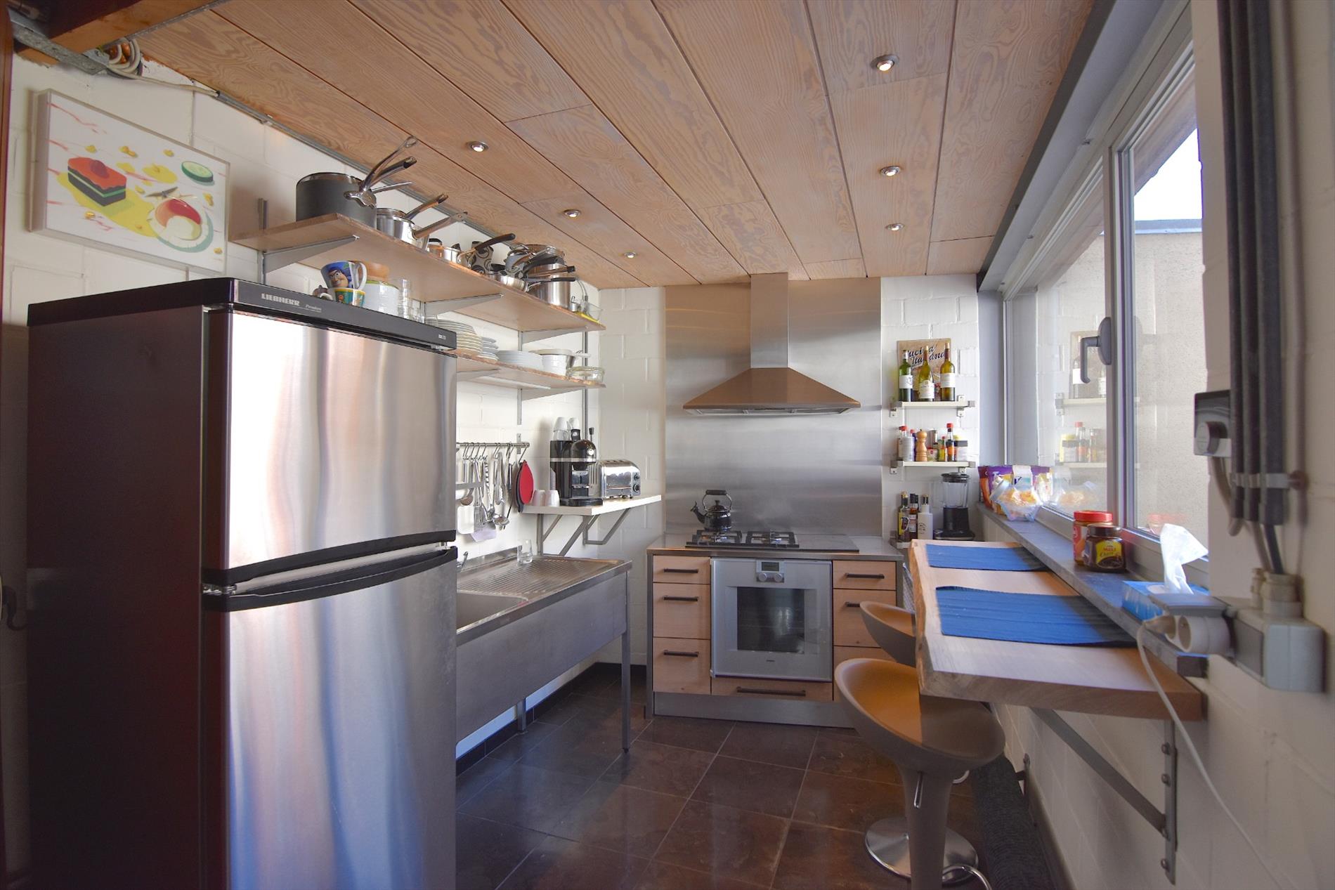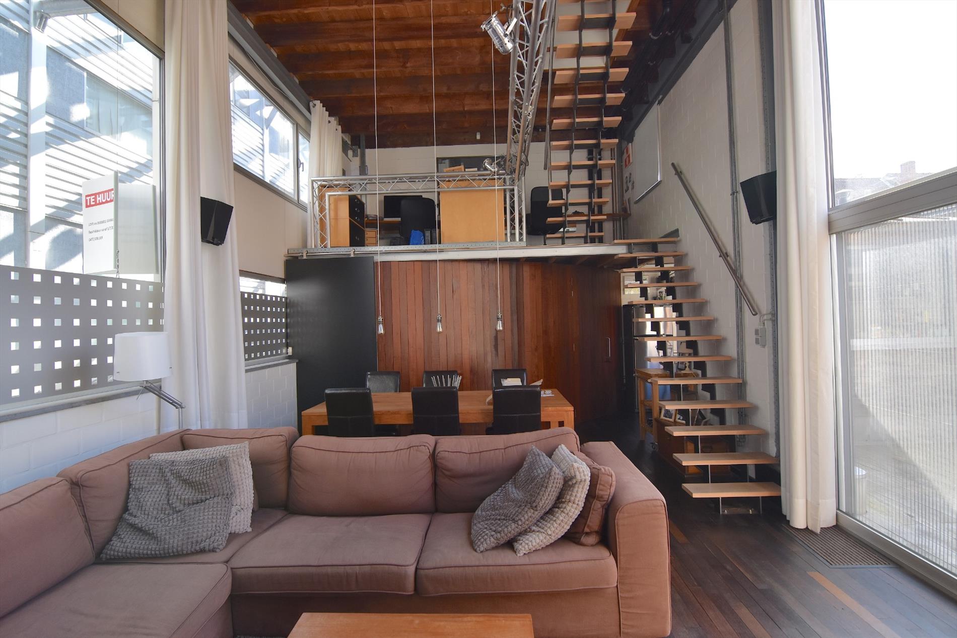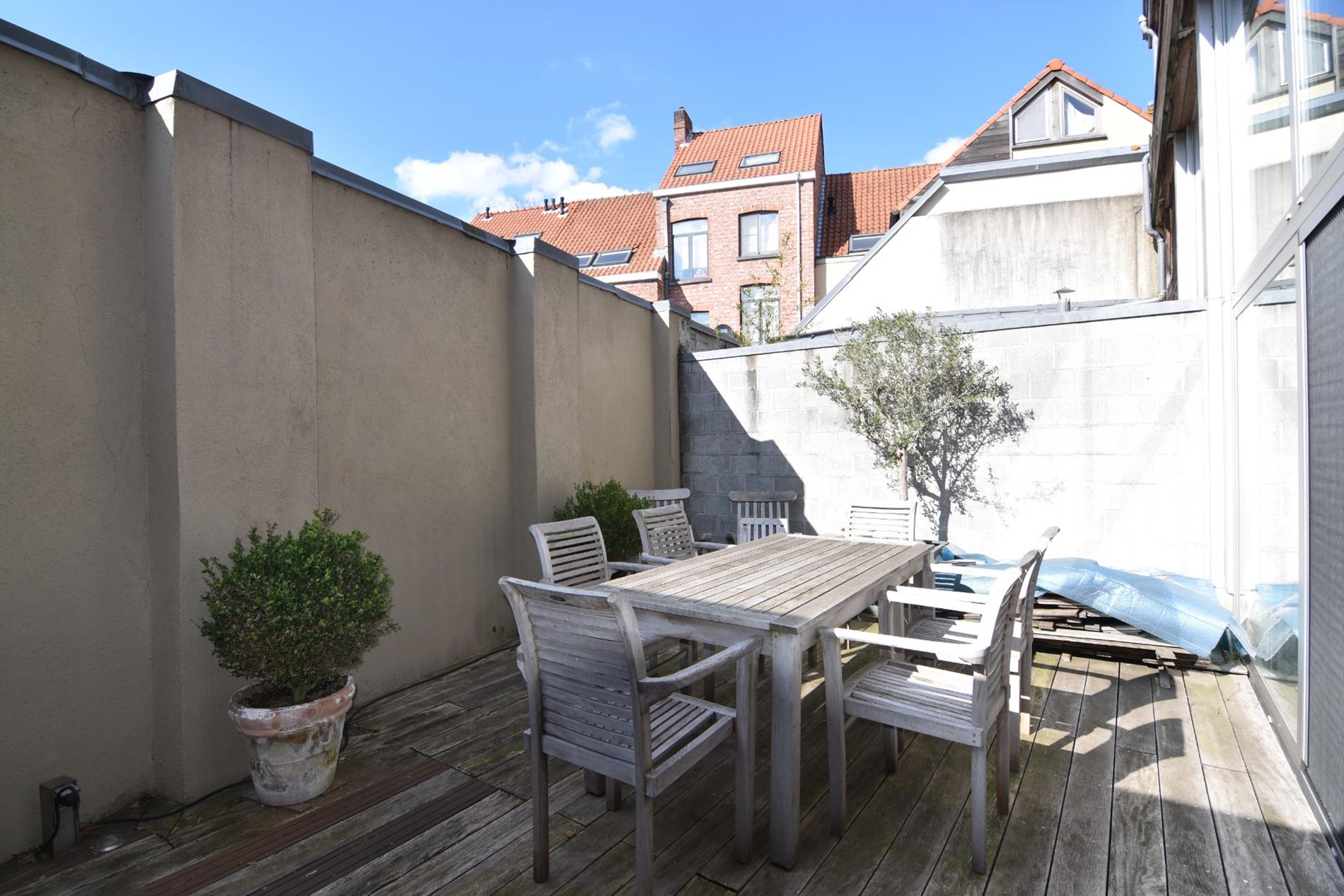 Instapklare loft in het centrum van Brugge met zonnig stadsterras. Volgende woonindeling: inkomhal met gastentoilet en vestiaire, lichtrijke leefruimte, open ingerichte eetkeuken met aansluitend een ruime berging.