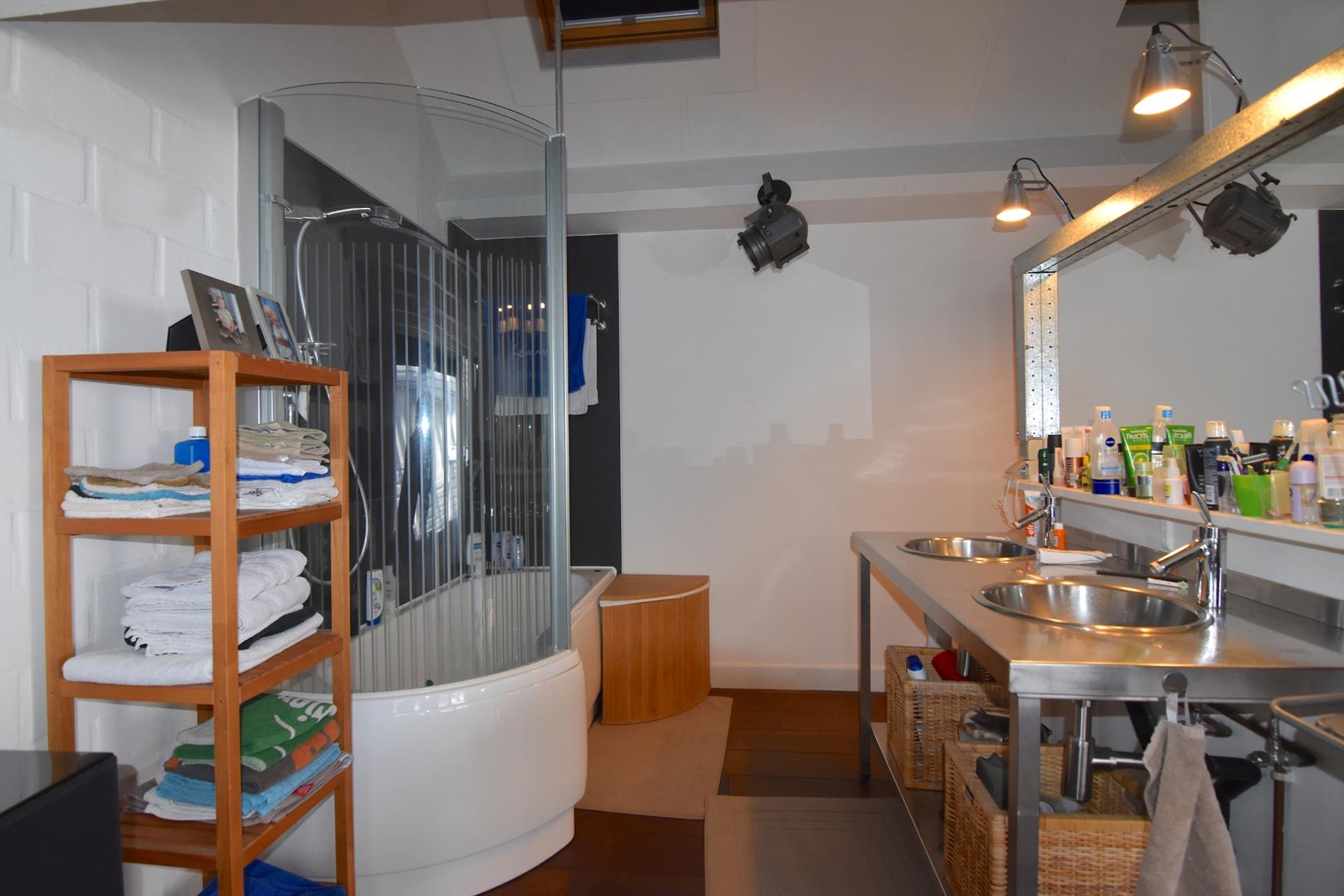 Op de tussenverdieping hebben we een polyvalente ruimte dat kan dienstdoen als bureau of gezellige relaxruimte.