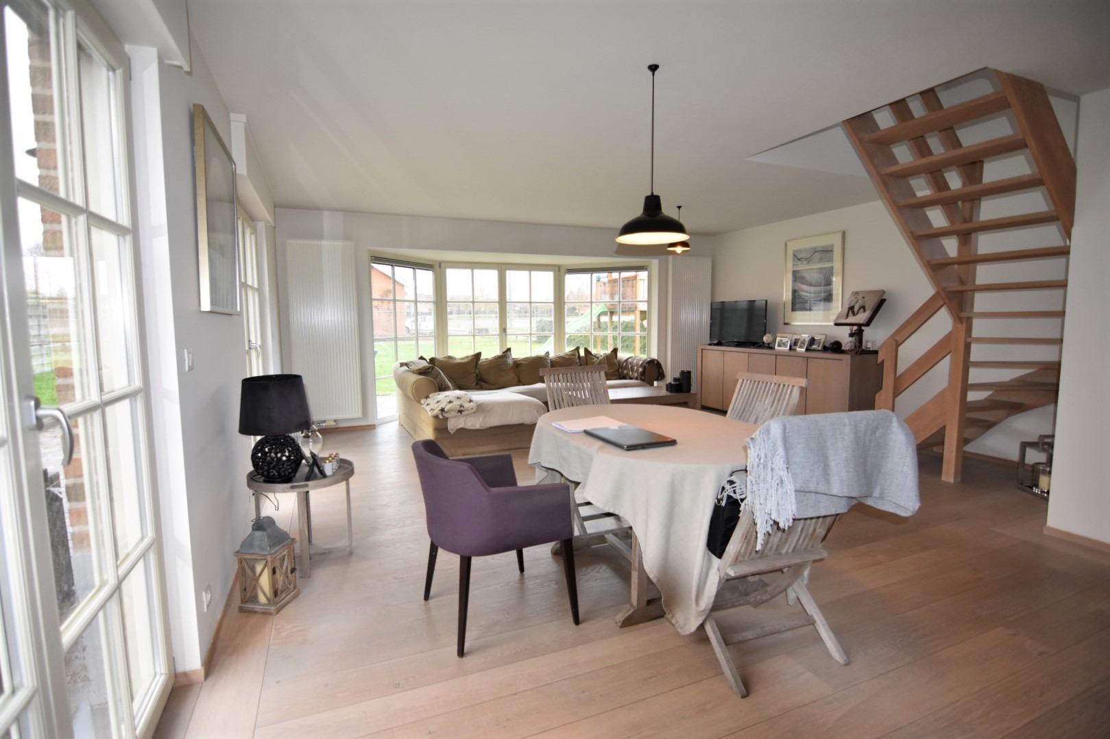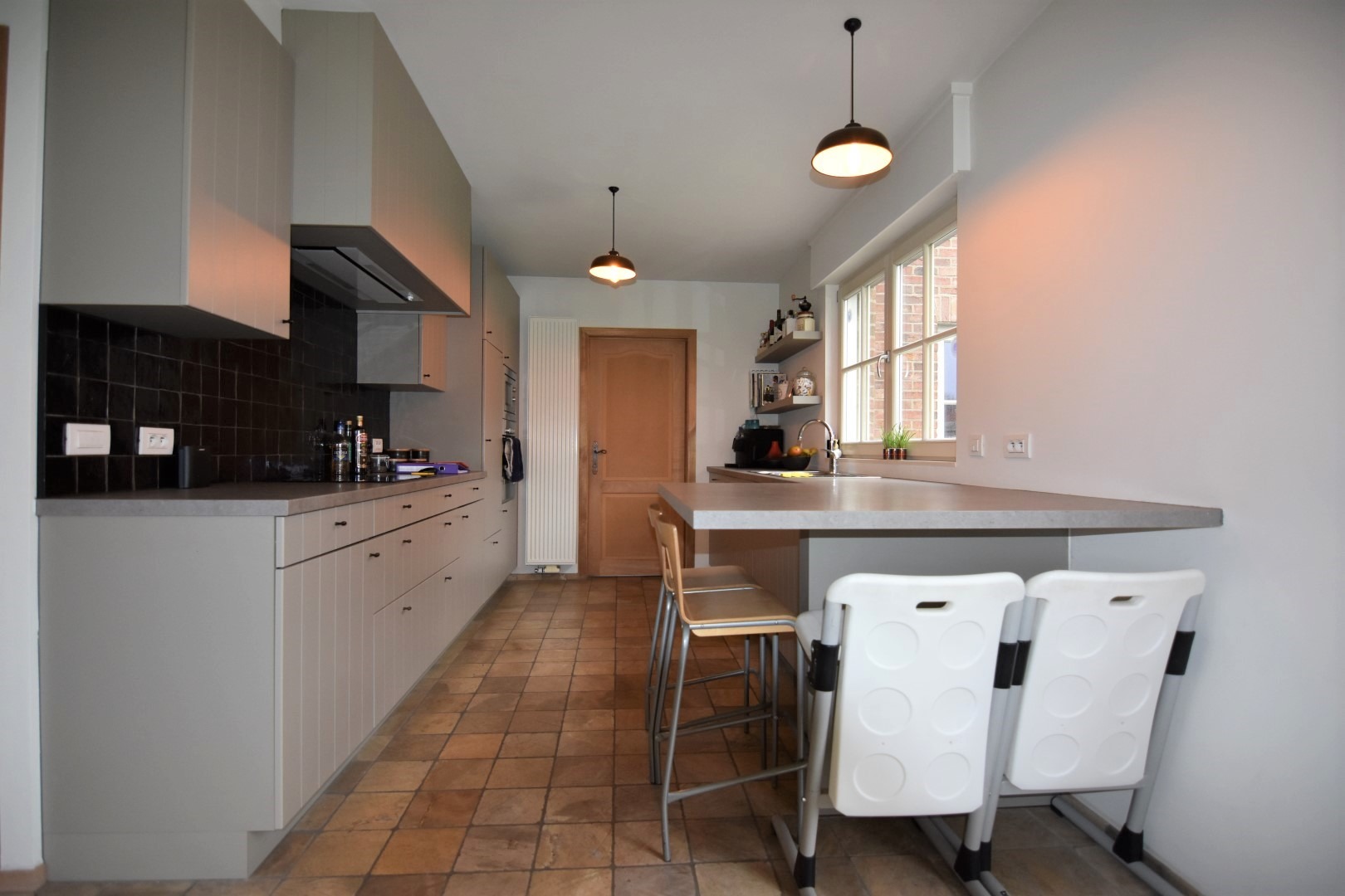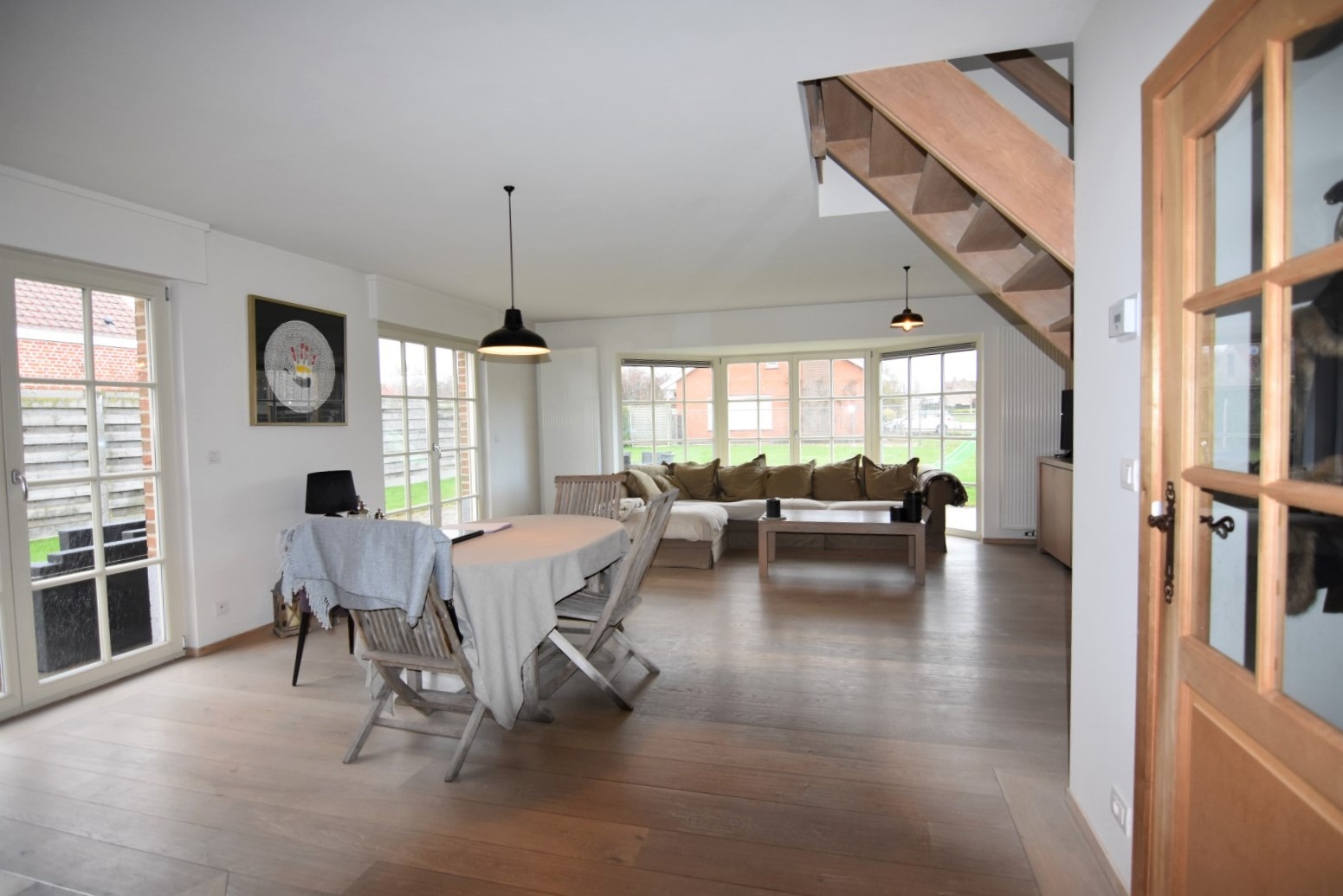 Indeling gelijkvloers: inkomhal - toilet - bureau/polyvalente kamer - lichtrijke open leefruimte met gezellige zithoek en eetplaats - volledig ingerichte keuken met ontbijtplaats - ruime en praktische berging met wasplaats - garage (extra parkeerplaats aan de woning).