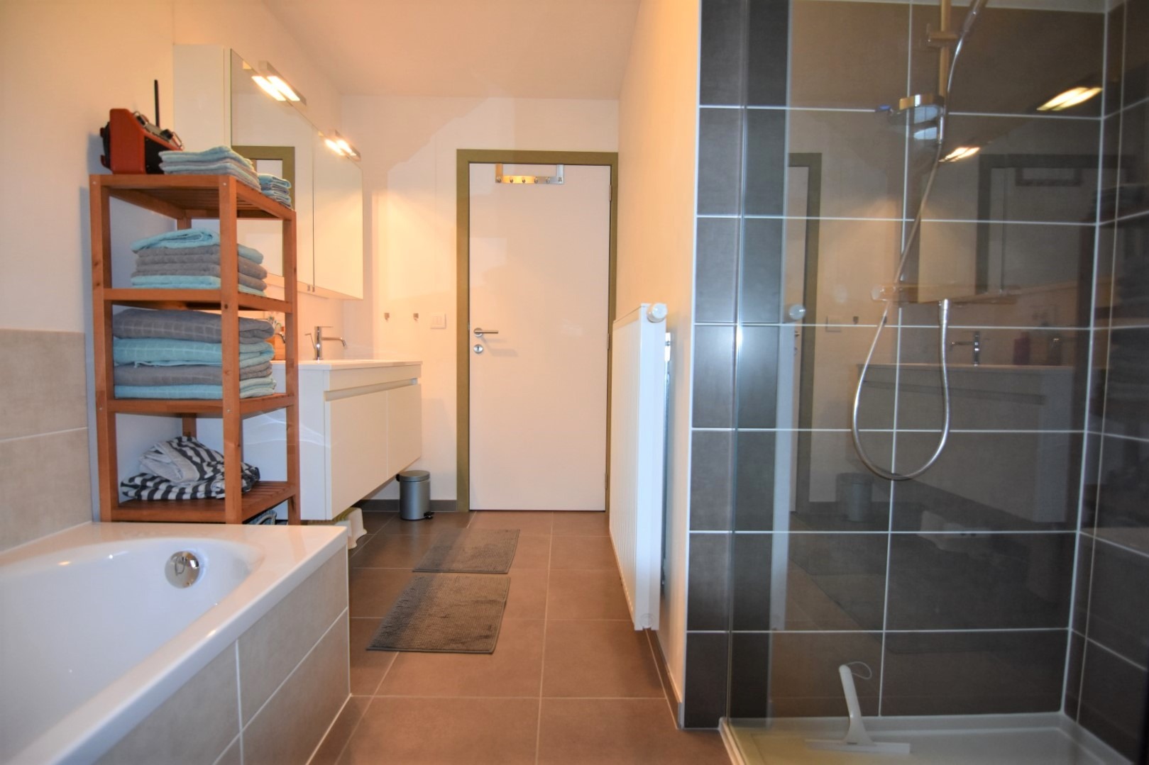 Indeling: inkomhal met toilet - keuken met eetplaats - ruime leefruimte met aparte hoek (bureau/speelhoek) en berging - groot terras & ruime tuin - carport mét berging. Verdieping: nachthal - toilet - 3 slaapkamers waarvan 1 met annex (dressing/schoenen/berging) - prachtige badkamer met dubbele wastafel, ligbad én inloopdouche!