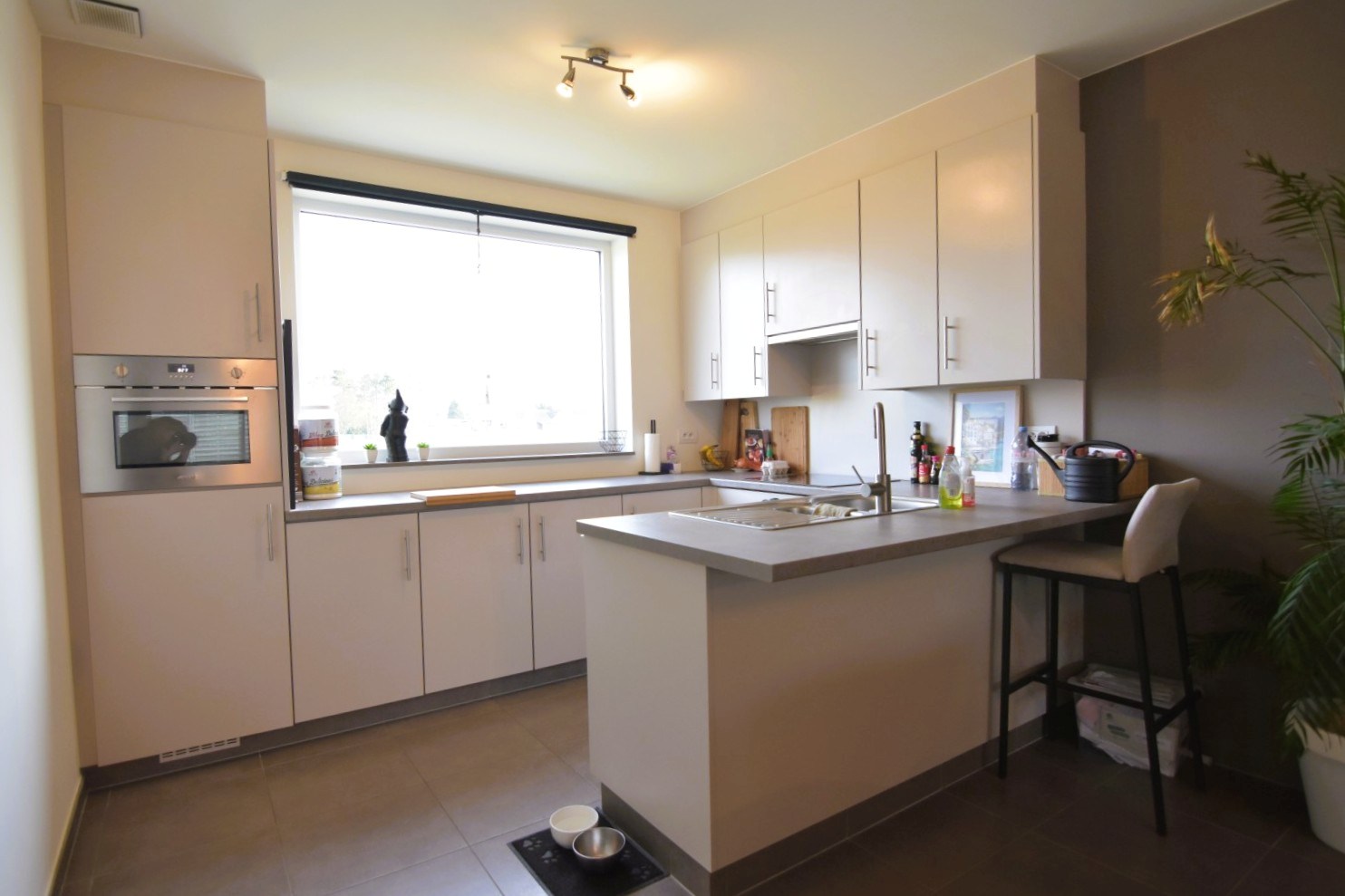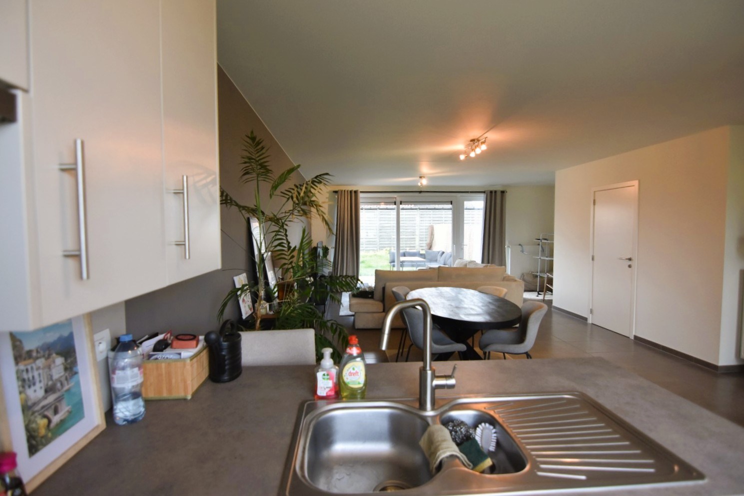 De woning werd in '25 volledig herschilderd en is voorzien van gordijnen.