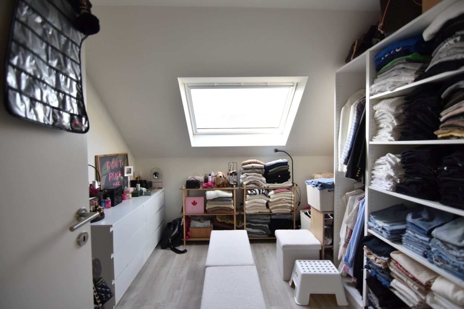 Verder is er een praktische opbergzolder, bereikbaar via een valluik vanuit de nachthal.
