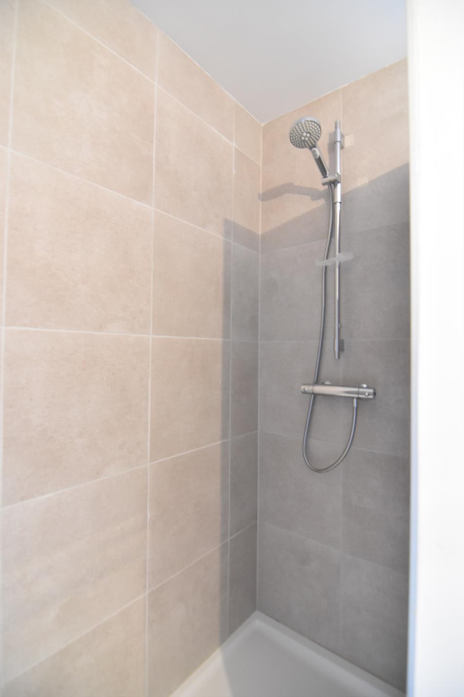 Op het verdiep hebben we 3 slaapkamers, apart toilet op de gang en een ruime badkamer met inloopdouche en lavabomeubel.