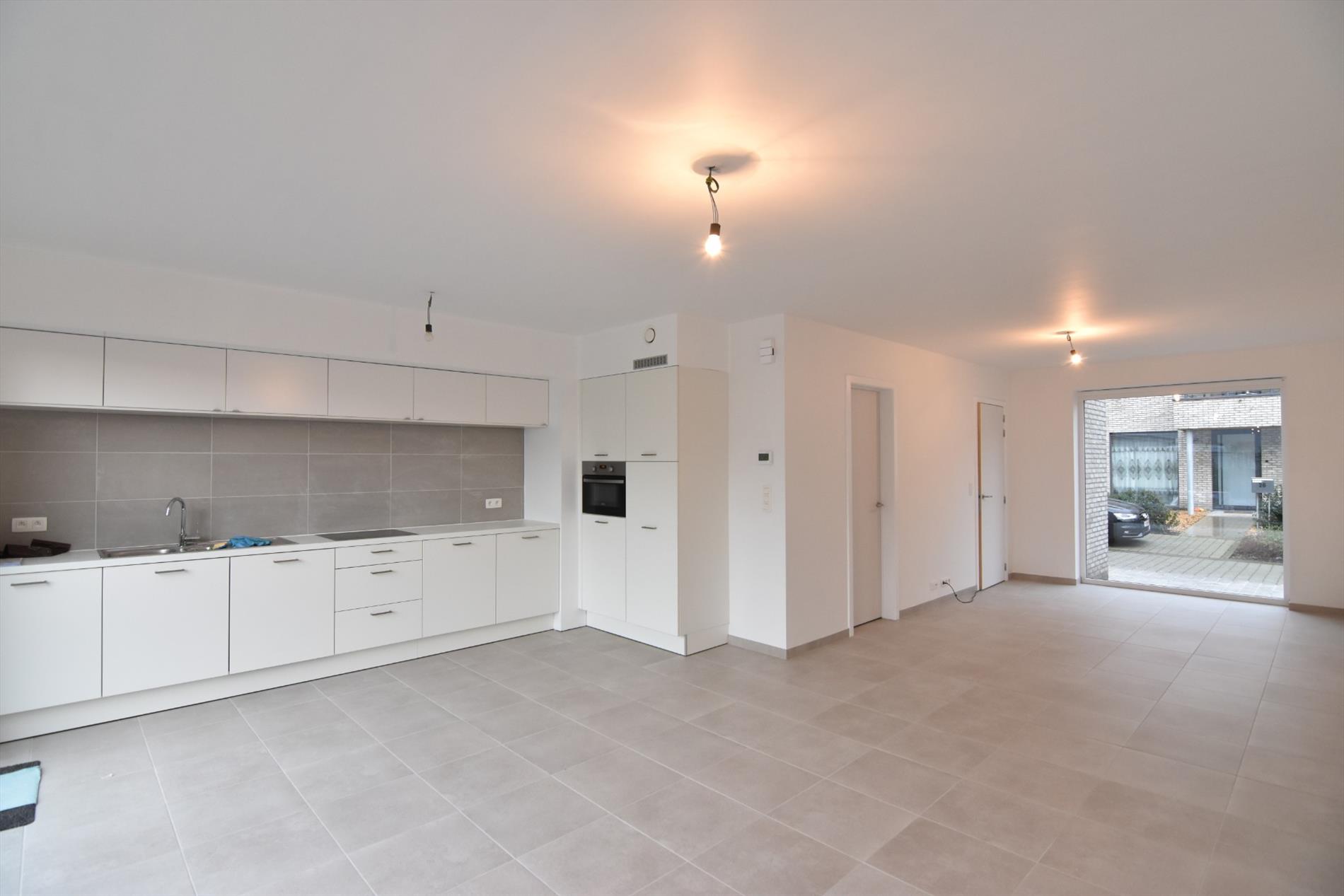 Volgende woonindeling : inkomhal met gastentoilet, lichtrijke leef- & eetruimte met open ingerichte keuken, ruime berging. Zuidgerichte tuin met fietspoortje achteraan.