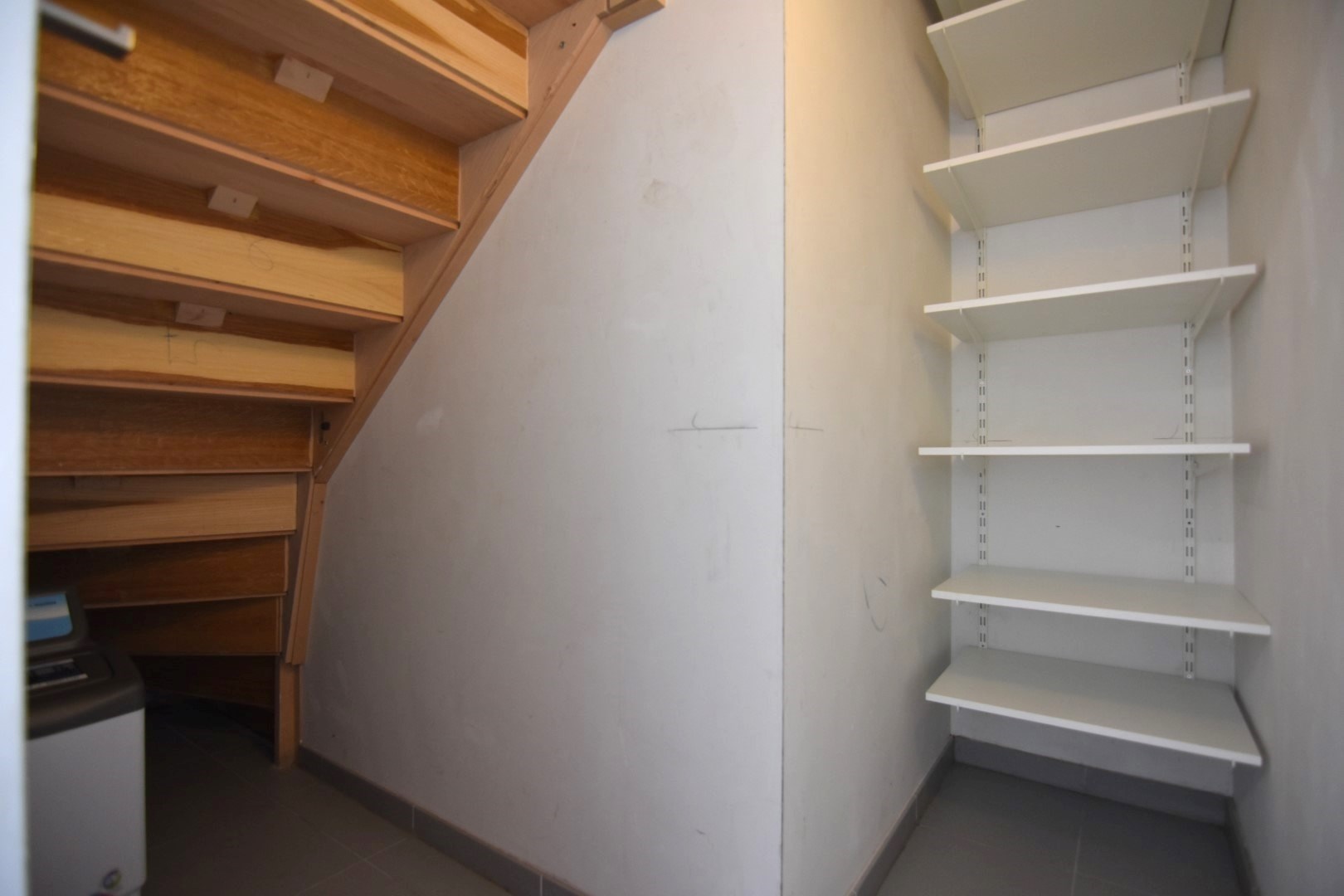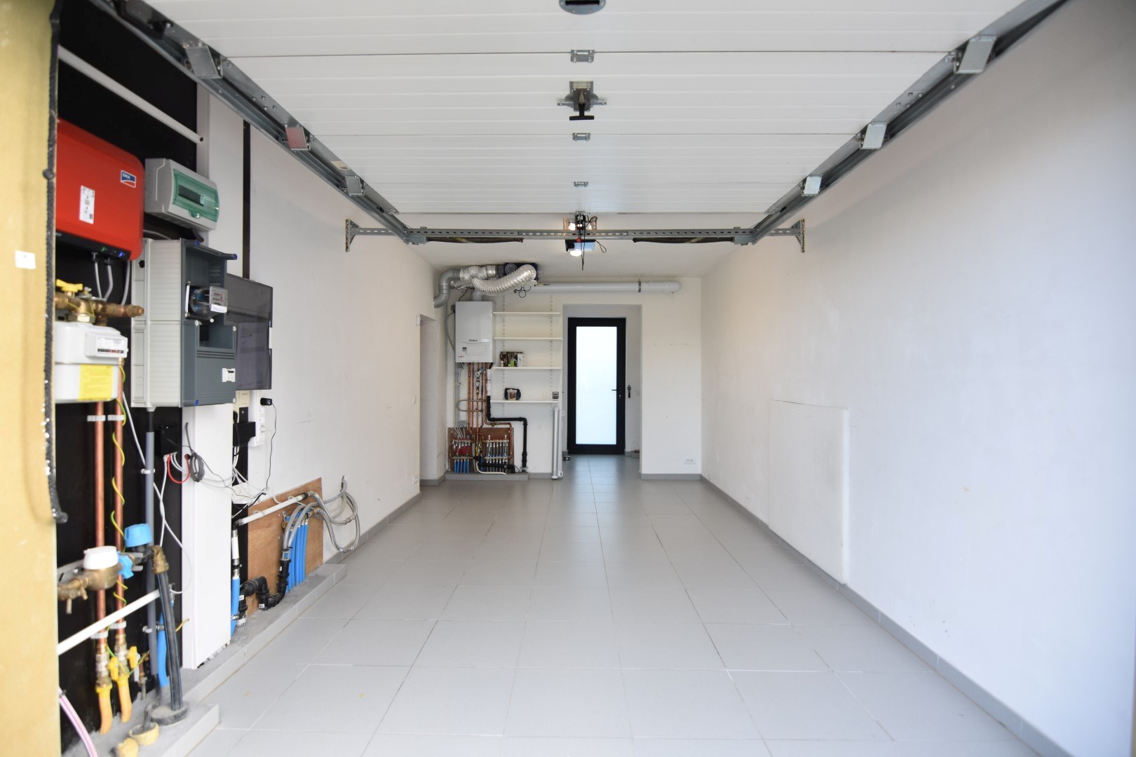 GELIJKVLOERS: ruime inkomhal met toilet - leefruimte met veel lichtinval, aansluitend een prachtige keuken (volledig geïnstalleerd) - aansluitend berging/wasplaats en praktische garage (elektrische poort) met extra berging onder de trap