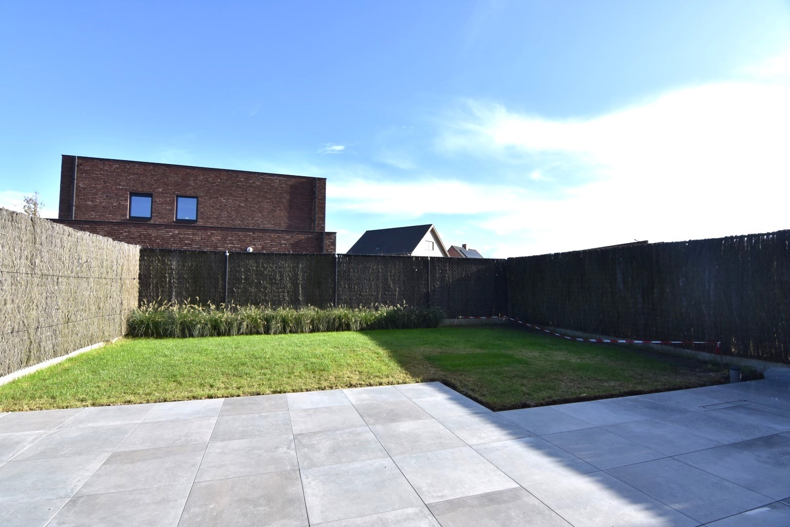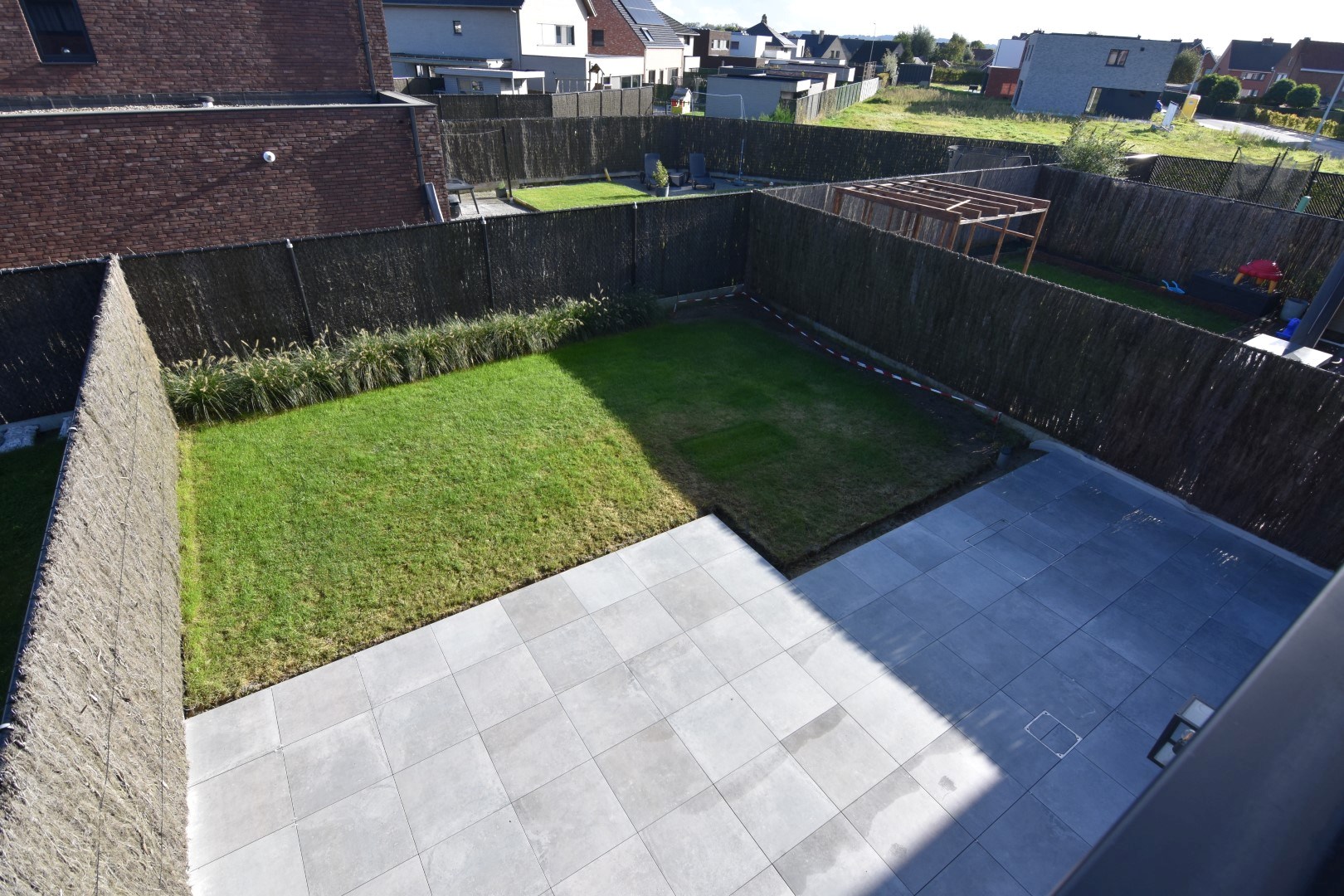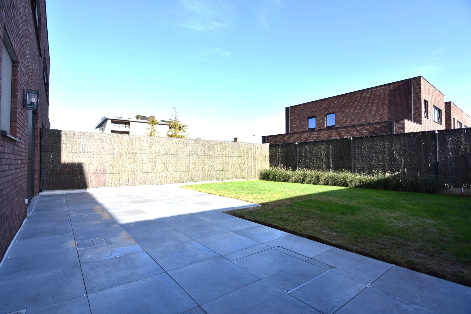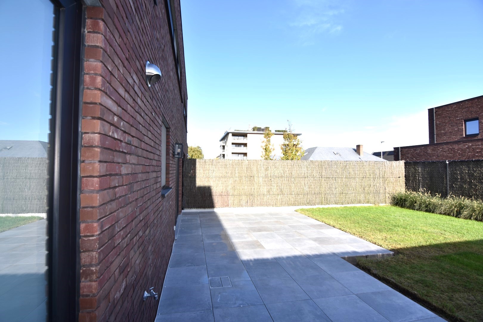 Exterieur: leuke, ruime tuin met volledig nieuw terras (net aangelegd) / vooraan een zeer ruime oprit met plaats voor 4 wagens