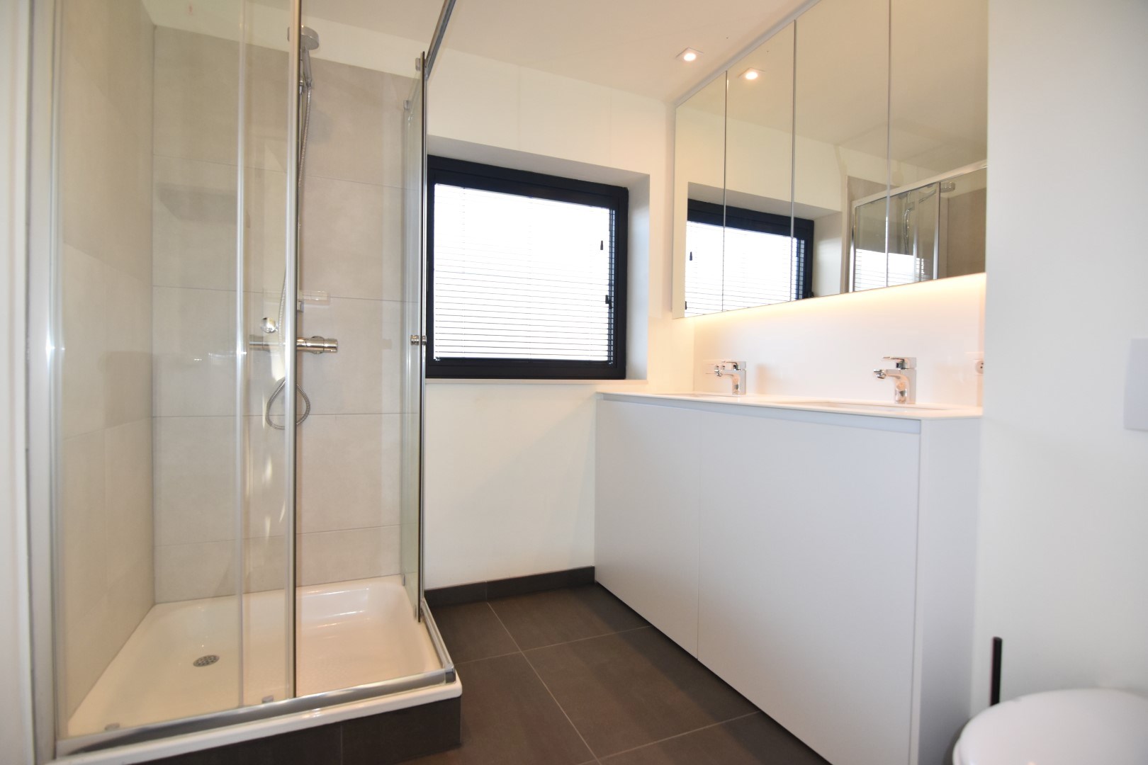 VERDIEPING: nachthal - 3 slaapkamers - berging - moderne badkamer met douche, toilet en dubbele wastafel (+ heel veel opbergruimte)