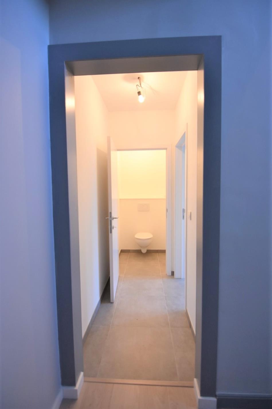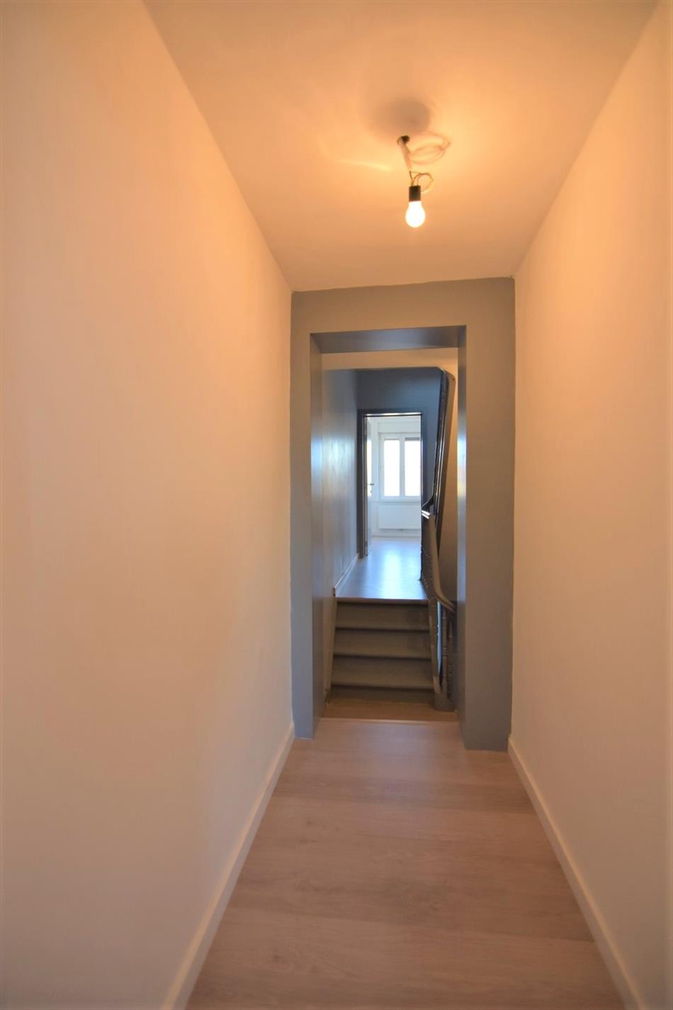 Op het tussenverdiep vinden we de eerste ruime slaapkamer. Op de verdieping zelf is er een tweede ruime slaapkamer alsook een hal met vervolgens een afzonderlijk toilet en een badkamer met ligbad, douche, enkele wastafel en mogelijkheid ... tot plaatsen van kasten.