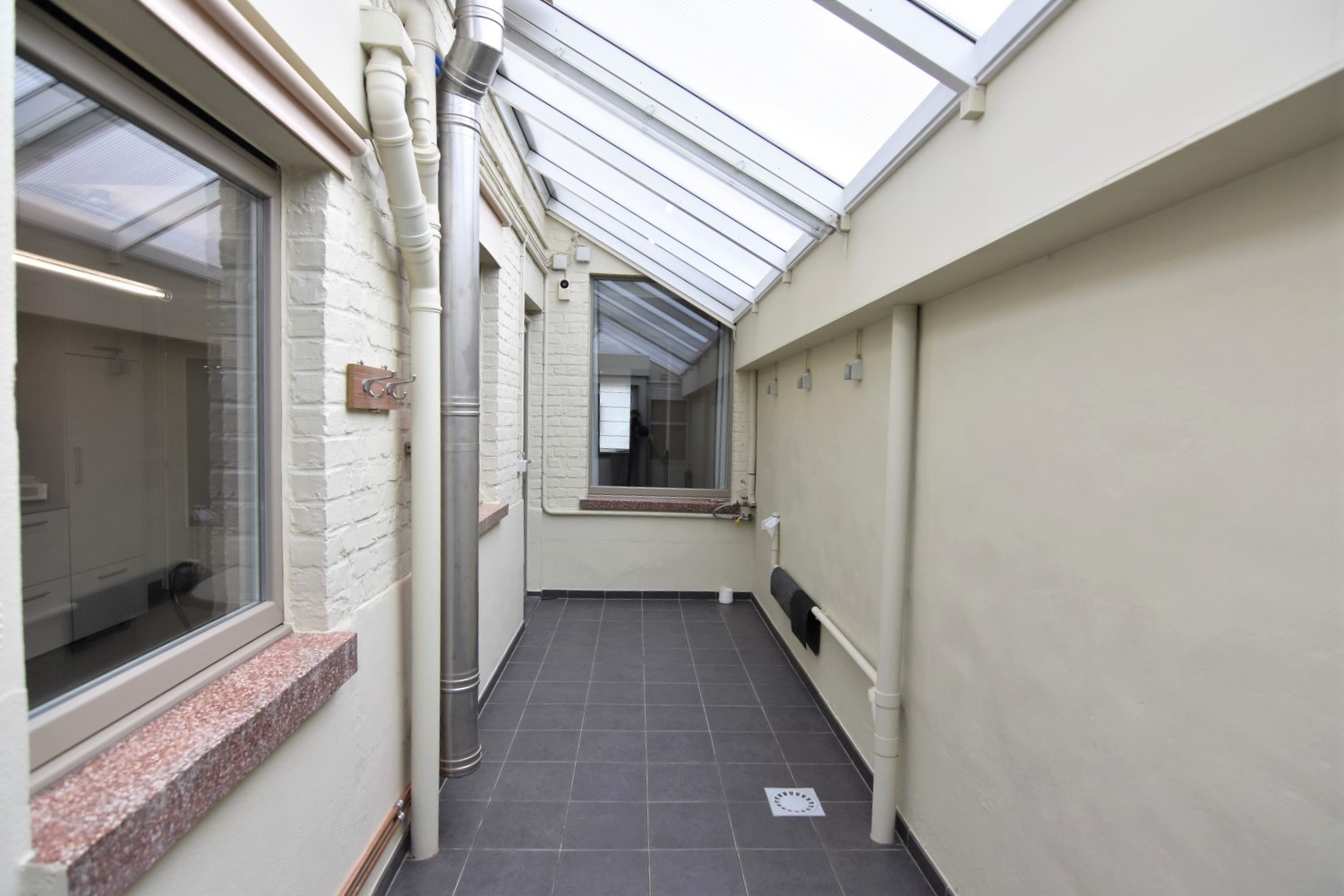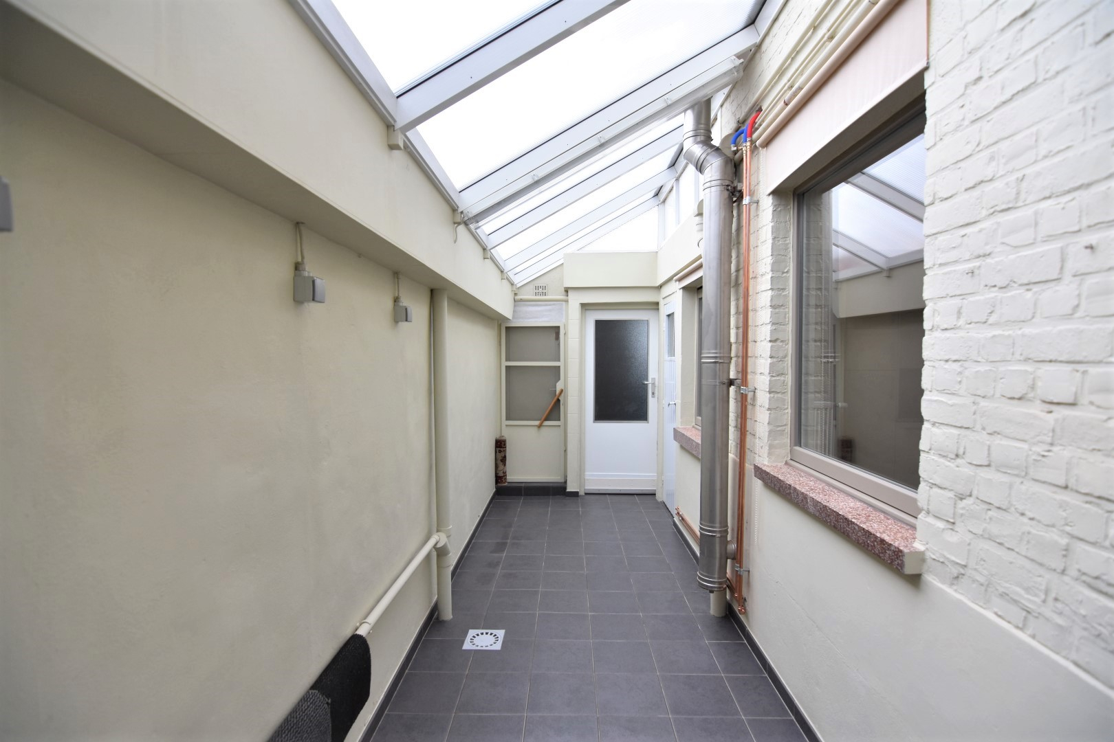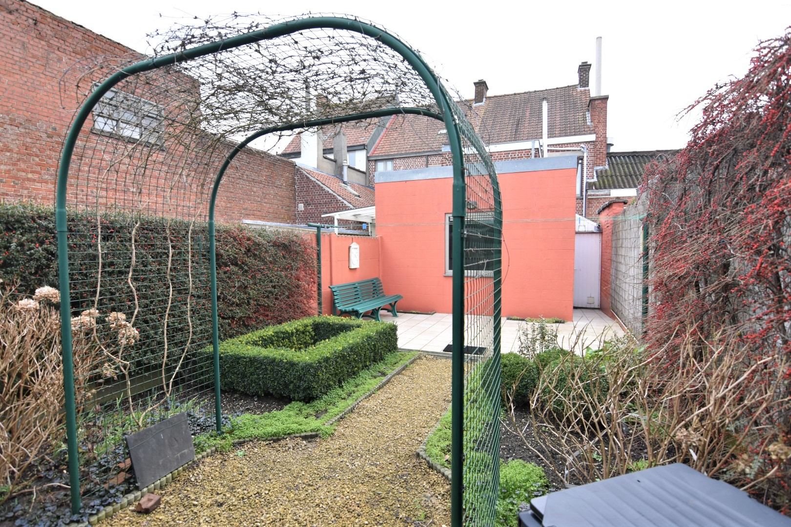 charmante inkomhal met trap naar verdieping en toegang tot droge kelder - aangename leefruimte met gashaard - ruime ingerichte keuken met veel opbergkasten/koelkast/diepvries/heteluchtoven - overdekte tussenruimte met aansluiting voor wasmachine en toegang tot onder meer het toilet, een handige werkplaats/berging én de gezellige stadstuin met praktisch tuinhuis.
