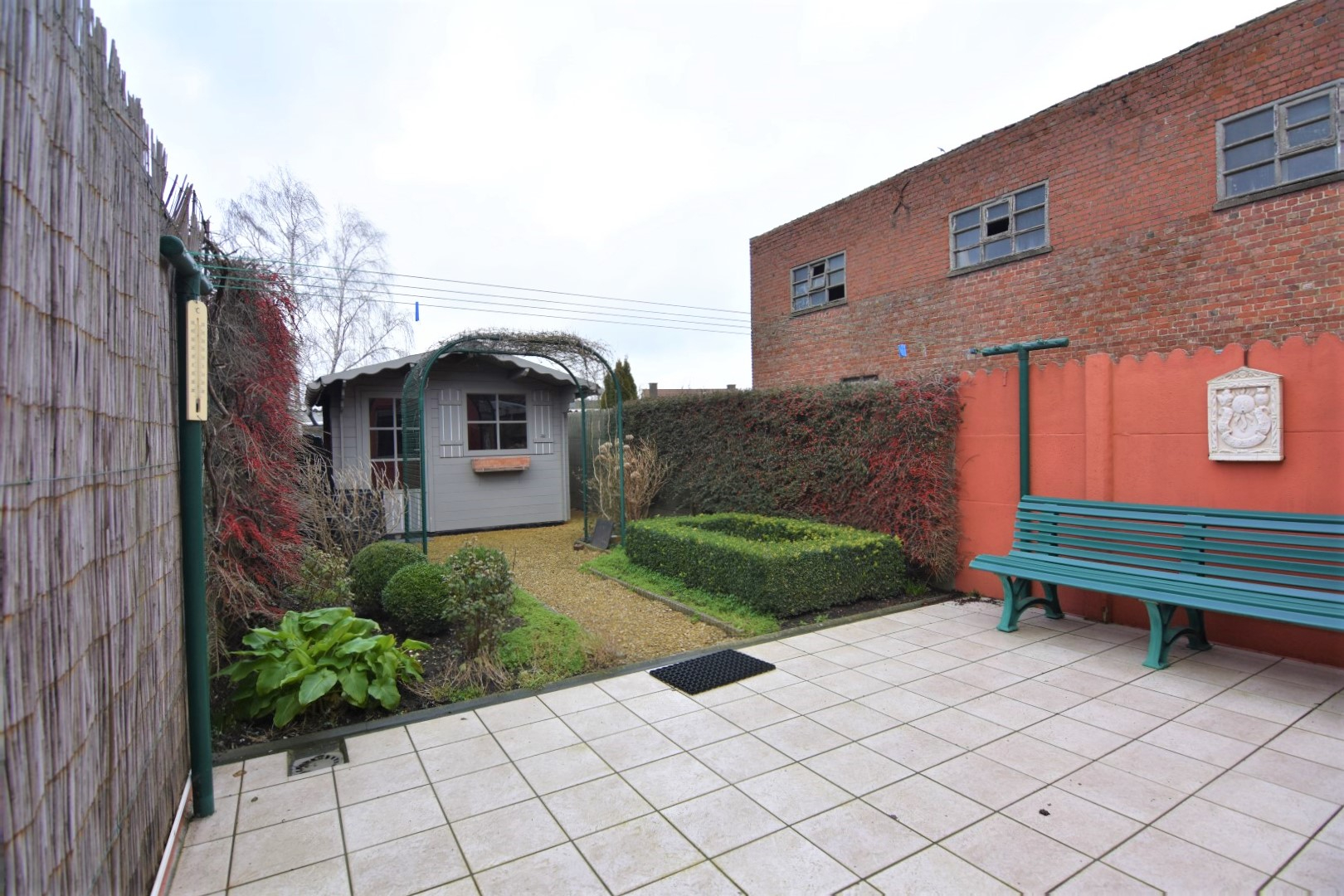 Verwarming op gas, dubbele beglazing, gedeeltelijke rolluiken, gordijnen, verlichting, regenwater,...