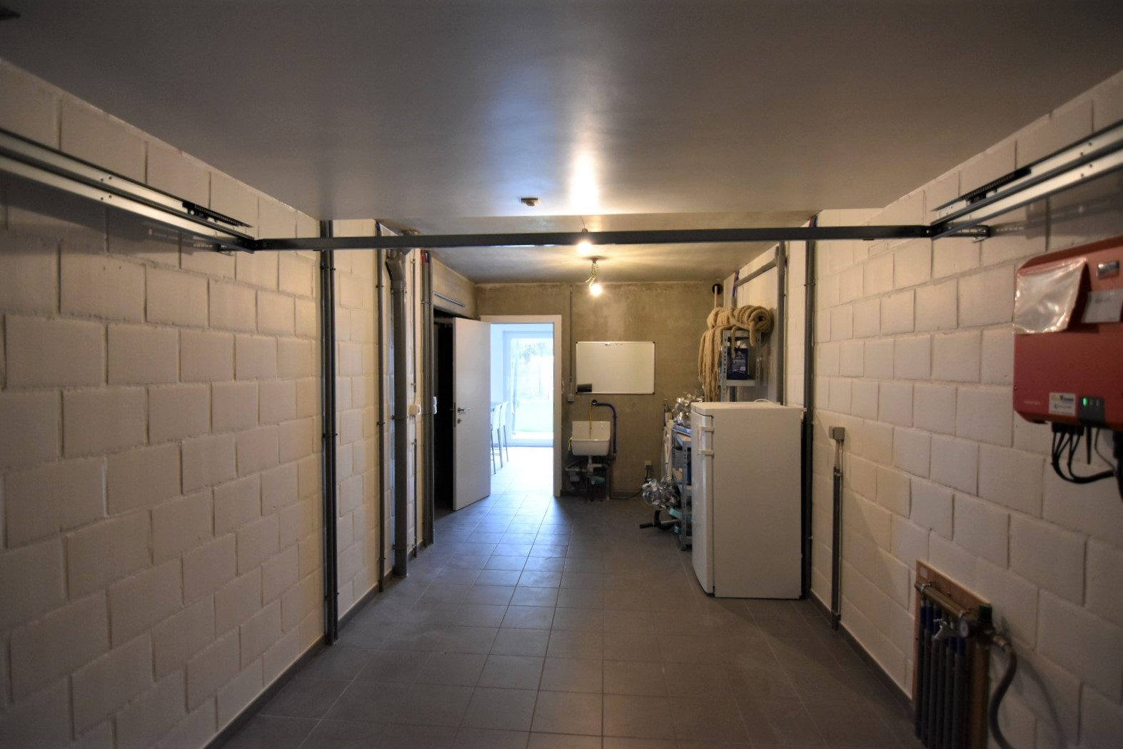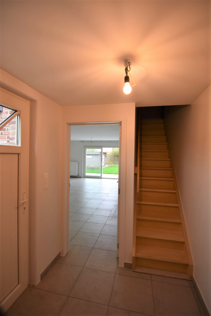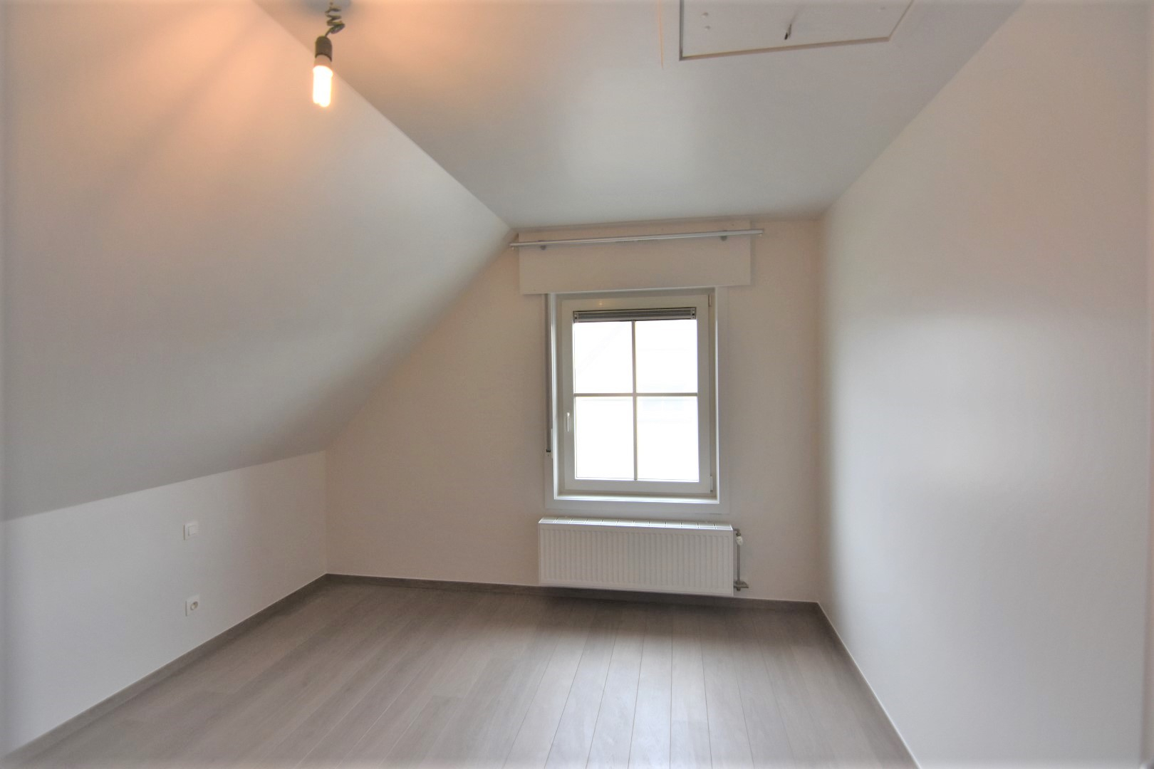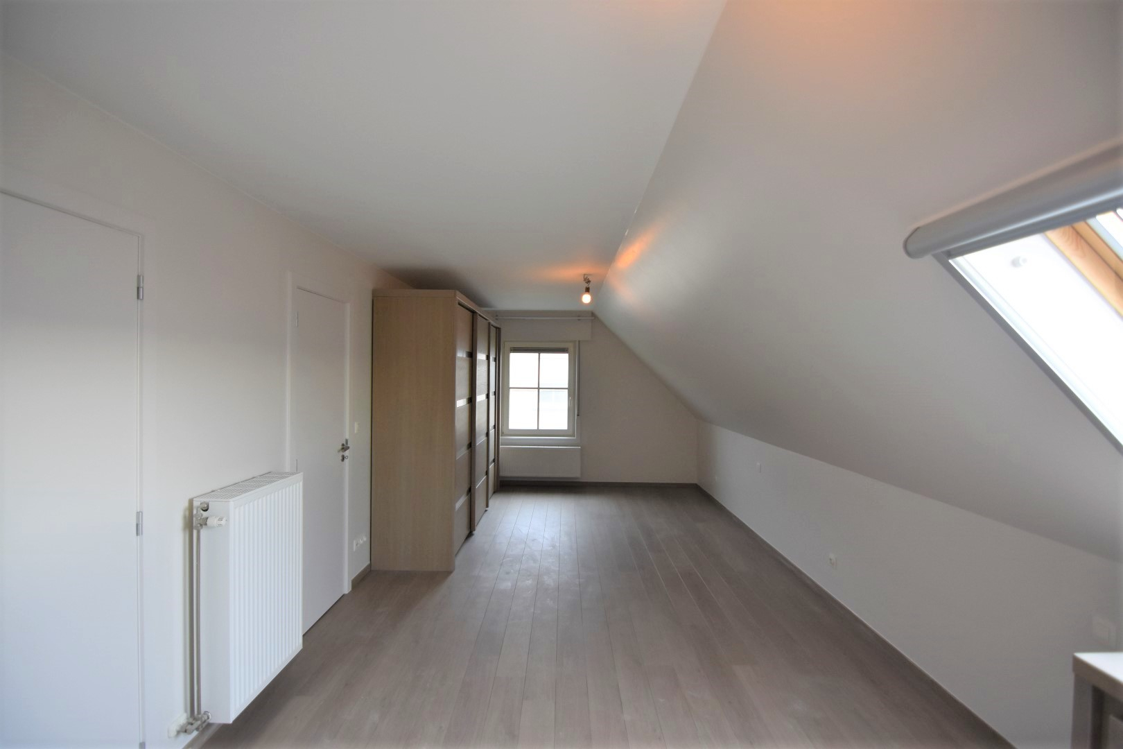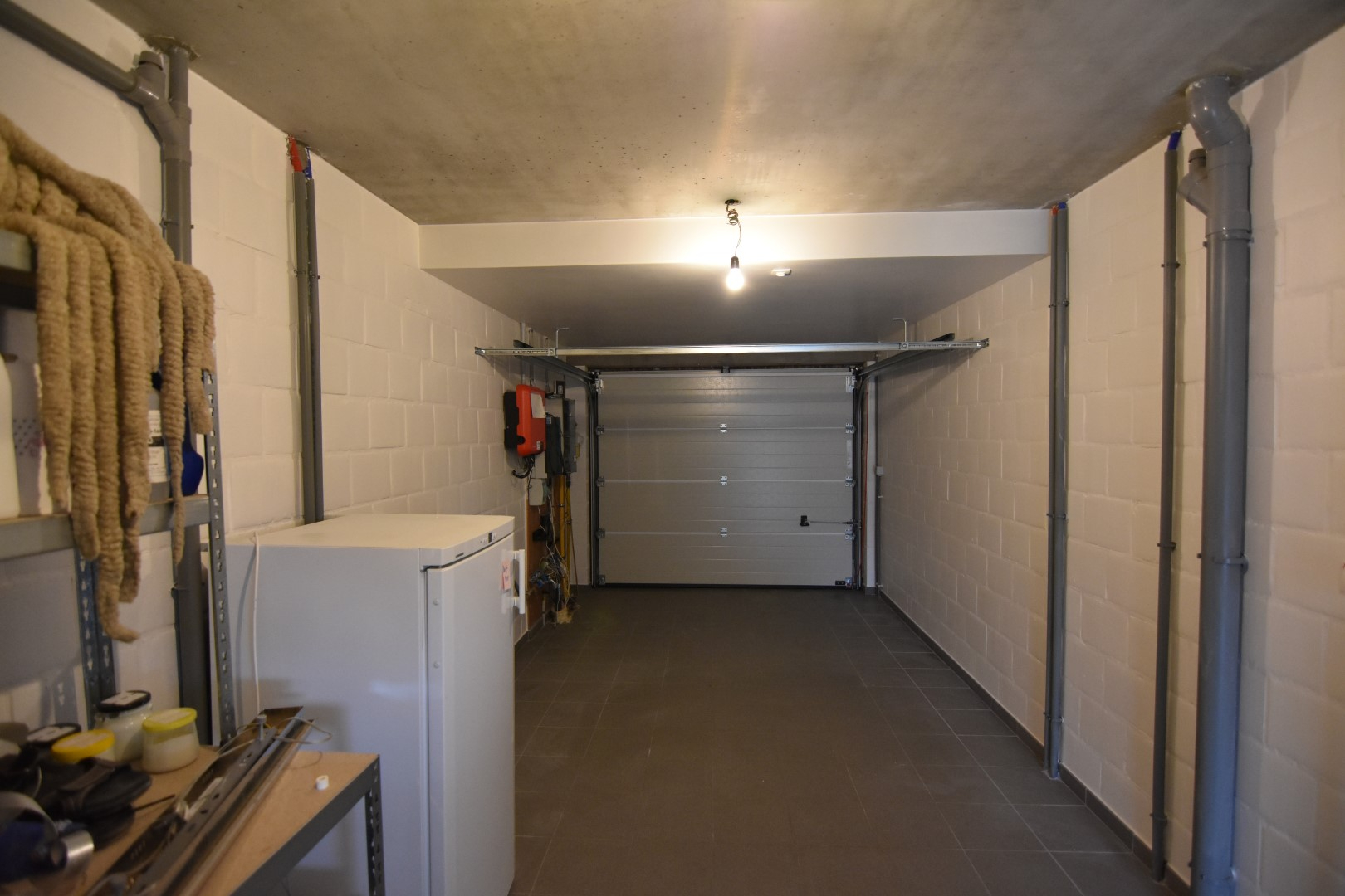 inkomhal met gastentoilet en trap - lichtrijke woonkamer met open ingerichte keuken (oven - vaatwas - vrijstaande koelkast - gasfornuis) - garage - nachthal - badkamer (enkele wastafel - ligbad - toilet - douche) - grote slaapkamer - middelgrote slaapkamer (beide met rolluiken en verduistering) - zolder.