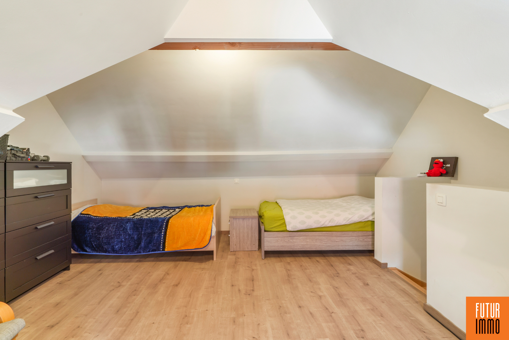 De zolderverdieping (via vaste trap) werd als 3de (grote) slaapkamer ingericht, maar kan perfect ook als bureau, hobbykamer, speelkamer,... ingericht worden.