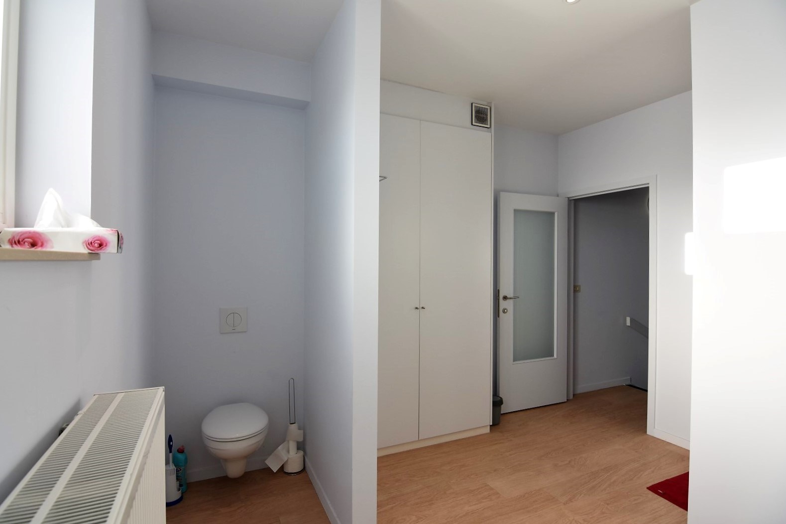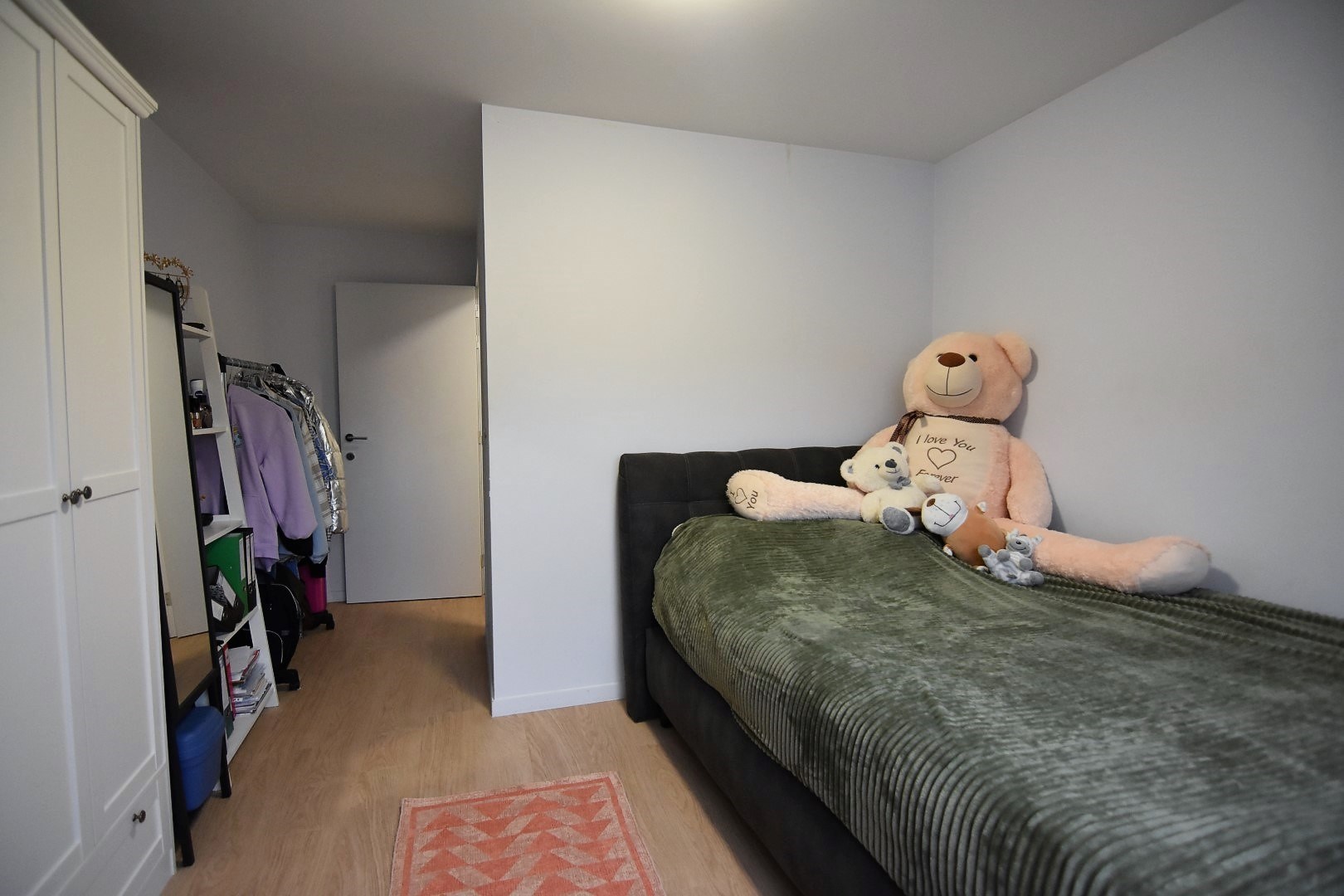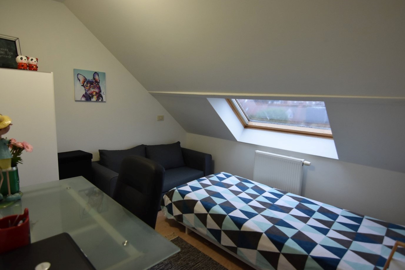 Op de tweede verdieping vinden we 1 kleine en 1 grote slaapkamer.