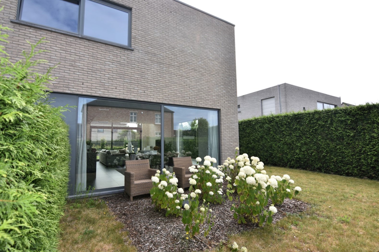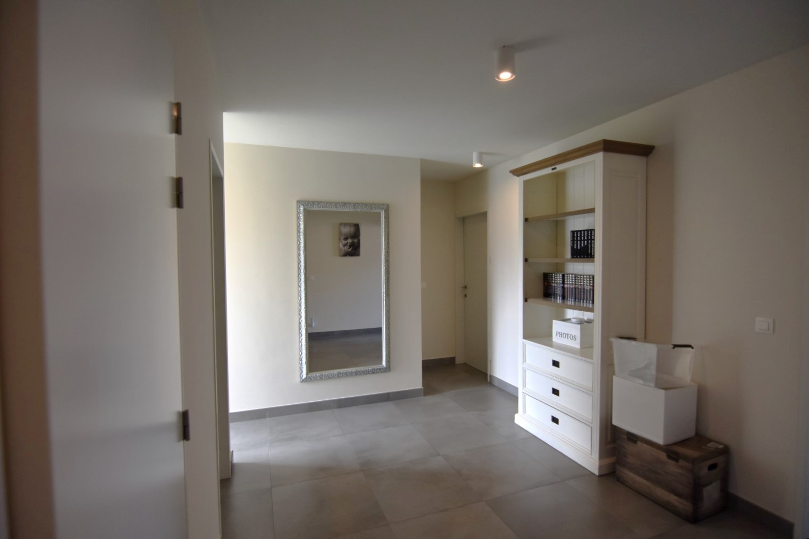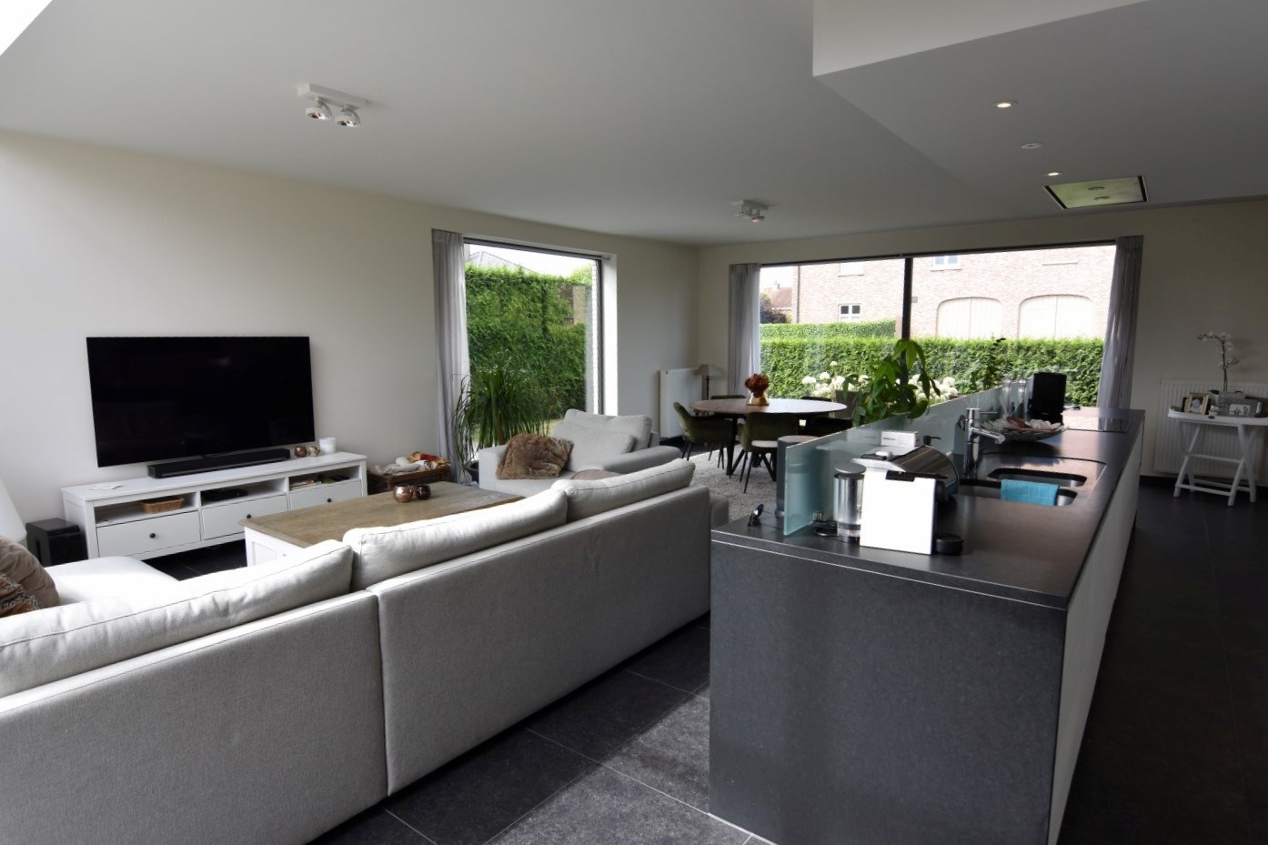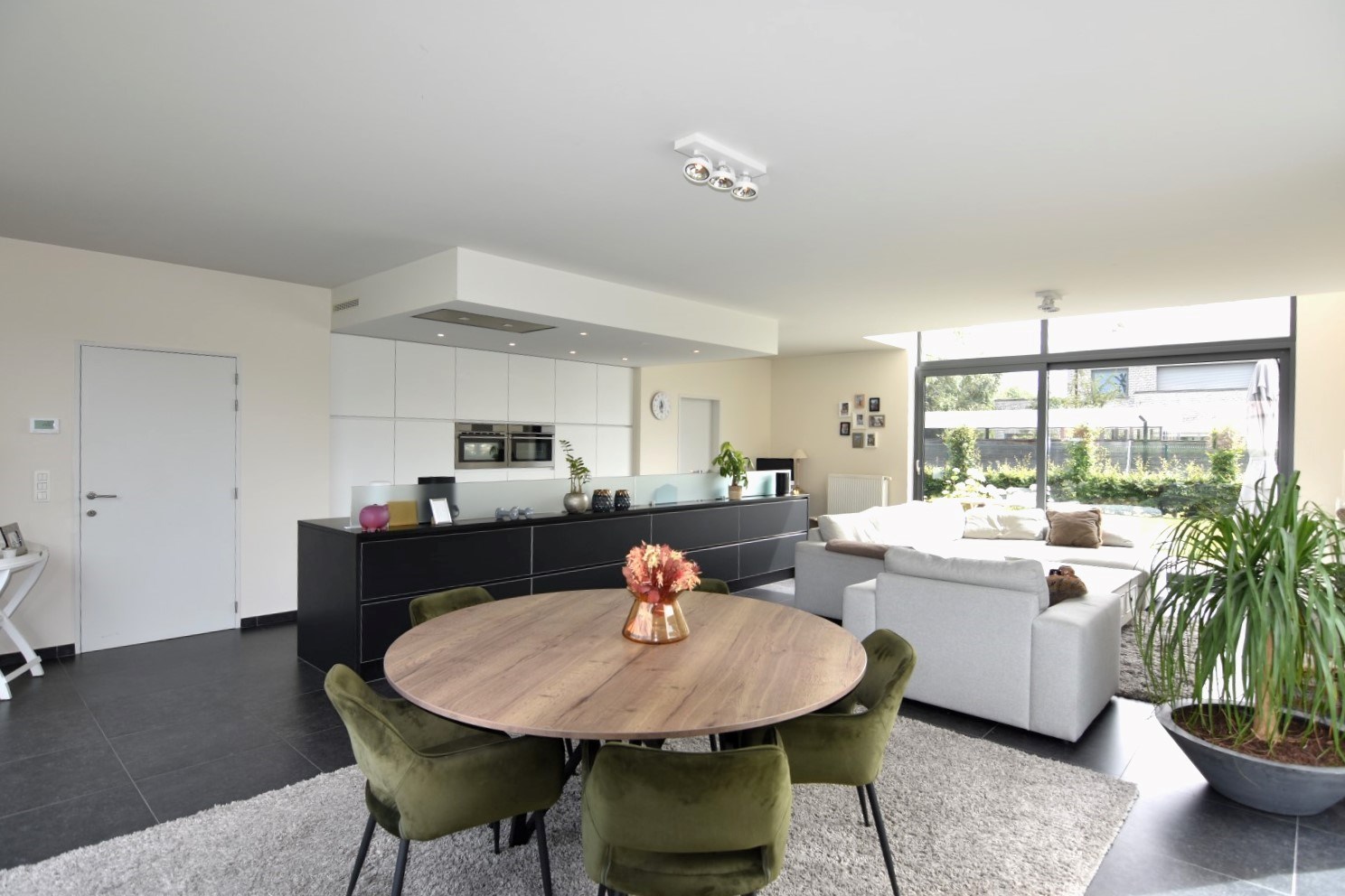 GELIJKVLOERS: inkomhal met vestiaire kast en trap - grote leefruimte met open ingerichte keuken (lichtrijk dankzij de vele raampartijen!) - tussenhal met gastentoilet - praktische wasplaats (inbouwkasten) - garage met automatische poort