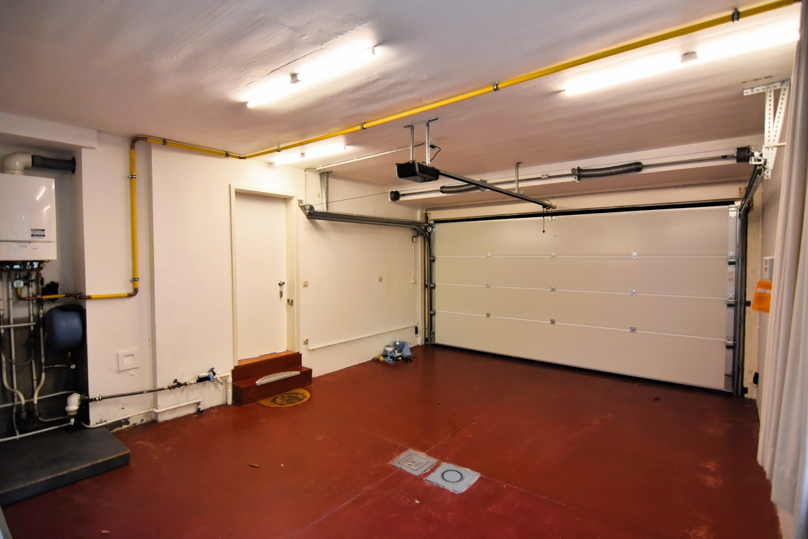 inkomhal met gastentoilet - ruime garage met wasplaats (geautomatiseerde poort pas vernieuwd!) en toegang tot een ruime zolder (via valluik - geïsoleerd) - lichtrijke woonkamer met massieve parketvloer en mooie schouw met houthaard - goed onderhouden OBUMEX keuken, voorzien van de nodige keukentoestellen en aanpalend een praktische berging.