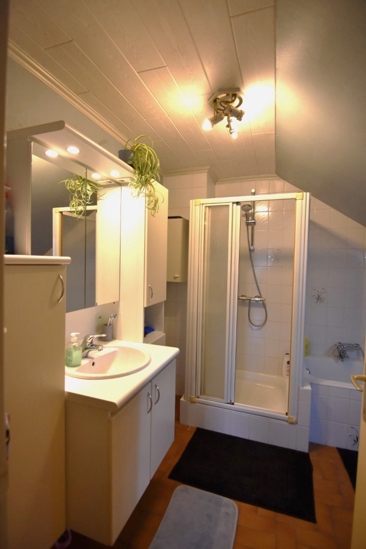 Op de verdieping bevindt zich de badkamer (douche, ligbad en toilet) en 3 ruime slaapkamers.