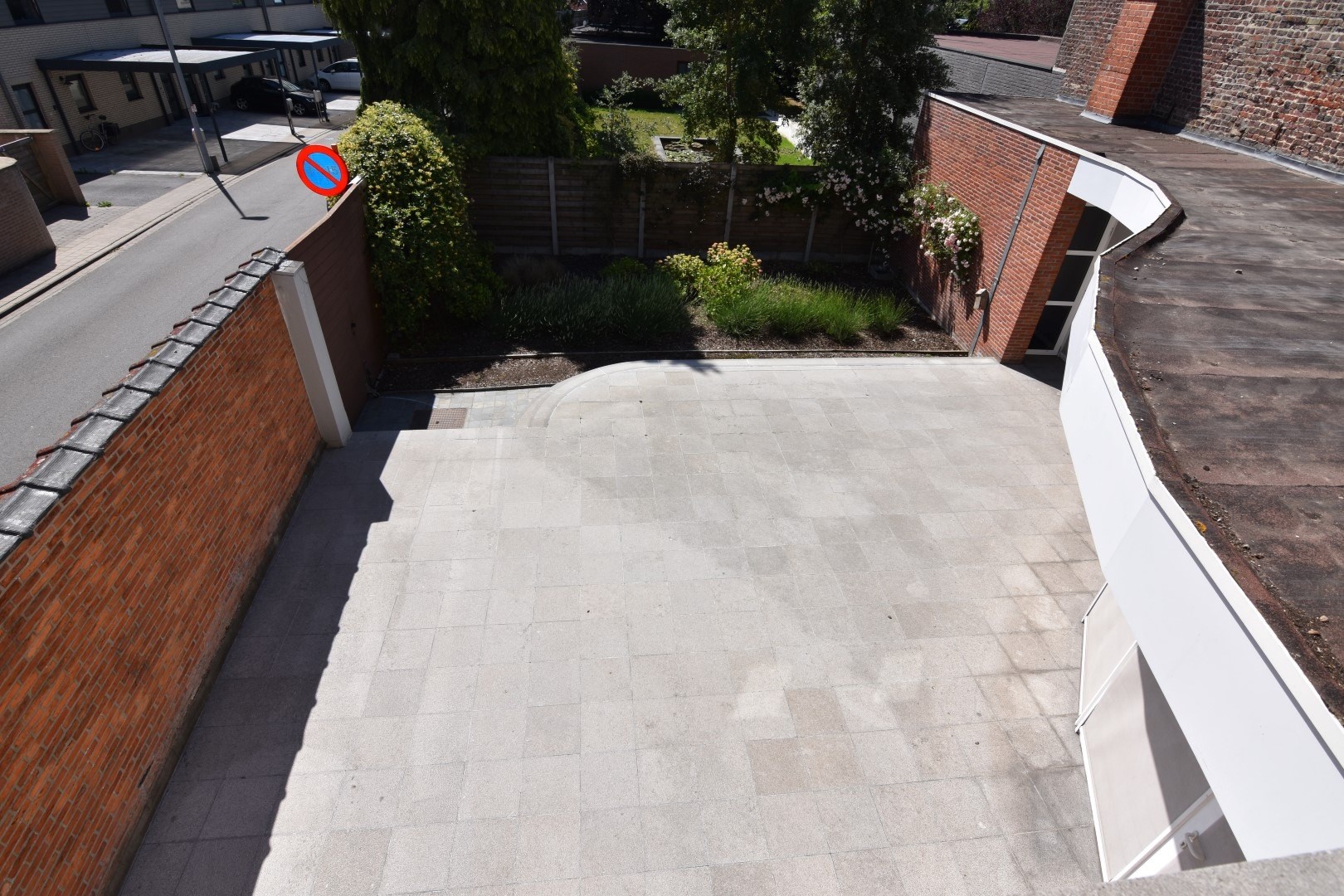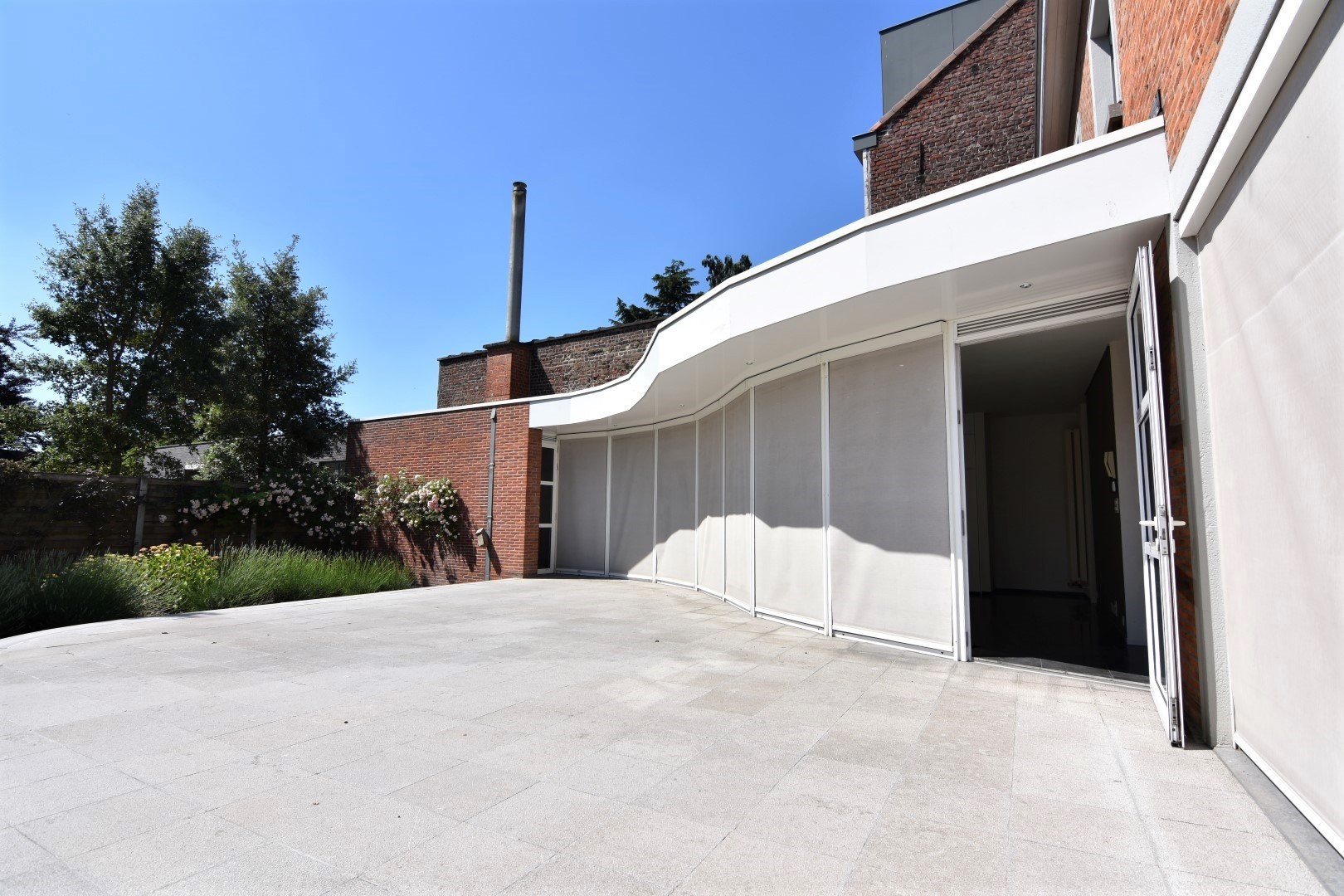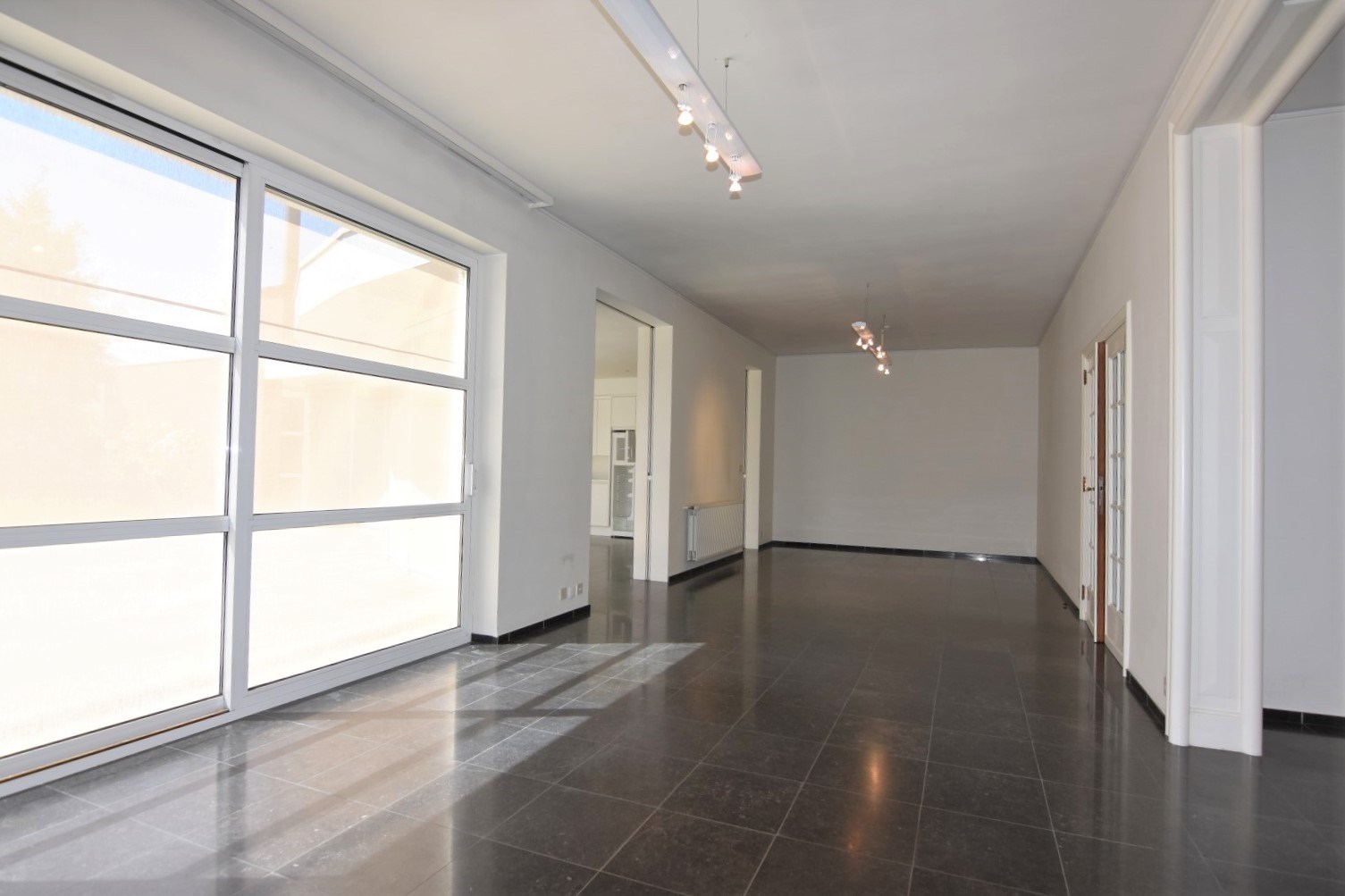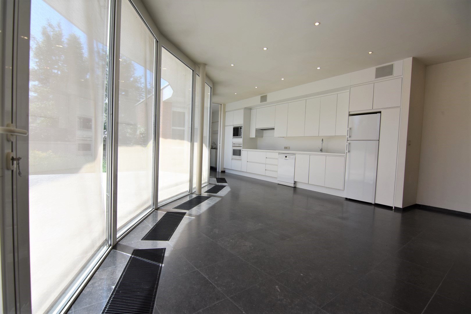 Gelijkvloers: inkomhal - toilet - bureau/bergruimte - zeer ruime leefruimte met zit- en eetplaats (inbouwspots) - grote keuken met zicht op de tuin (elek. screens), volledig ingericht met aanpalende berging - tuin met groot terras en tuinberging.