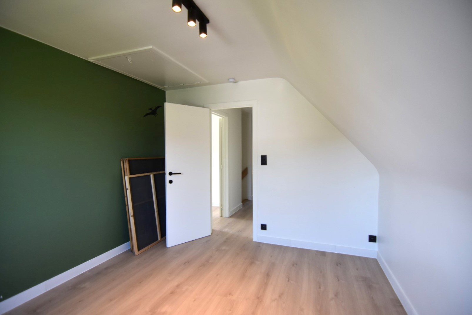 De geïsoleerde opbergzolder is bereikbaar via een trapladder.