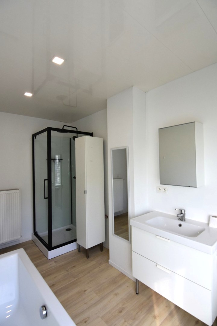 *EERSTE VERDIEPING: nachthal - 1 kleine en 1 middelgrote slaapkamer - badkamer met pas vernieuwde douche, ligbad, toilet en wastafel.