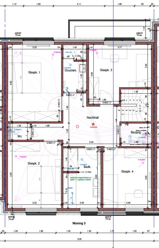 - op het verdiep hebben we 4 slaapkamers, badkamer met ligbad, inloopdouche en dubbele lavabomeubel, apart toilet op de nachthal, berging, douchekamer met inloopdouche en lavabomeubel.