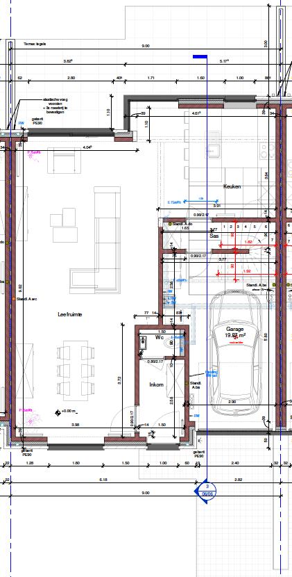 - op het gelijkvloers een inkomhal, vestiaire, gastentoilet, lichtrijke leefruimte met zit- en eethoek, ruime ingerichte open keuken, garage met berging.