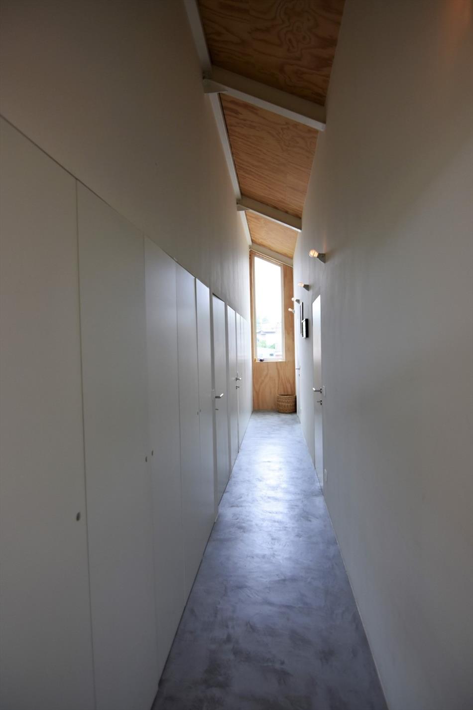 De nachthal (voorzien van inbouwkasten) brengt ons naar drie slaapkamers en de badkamer.