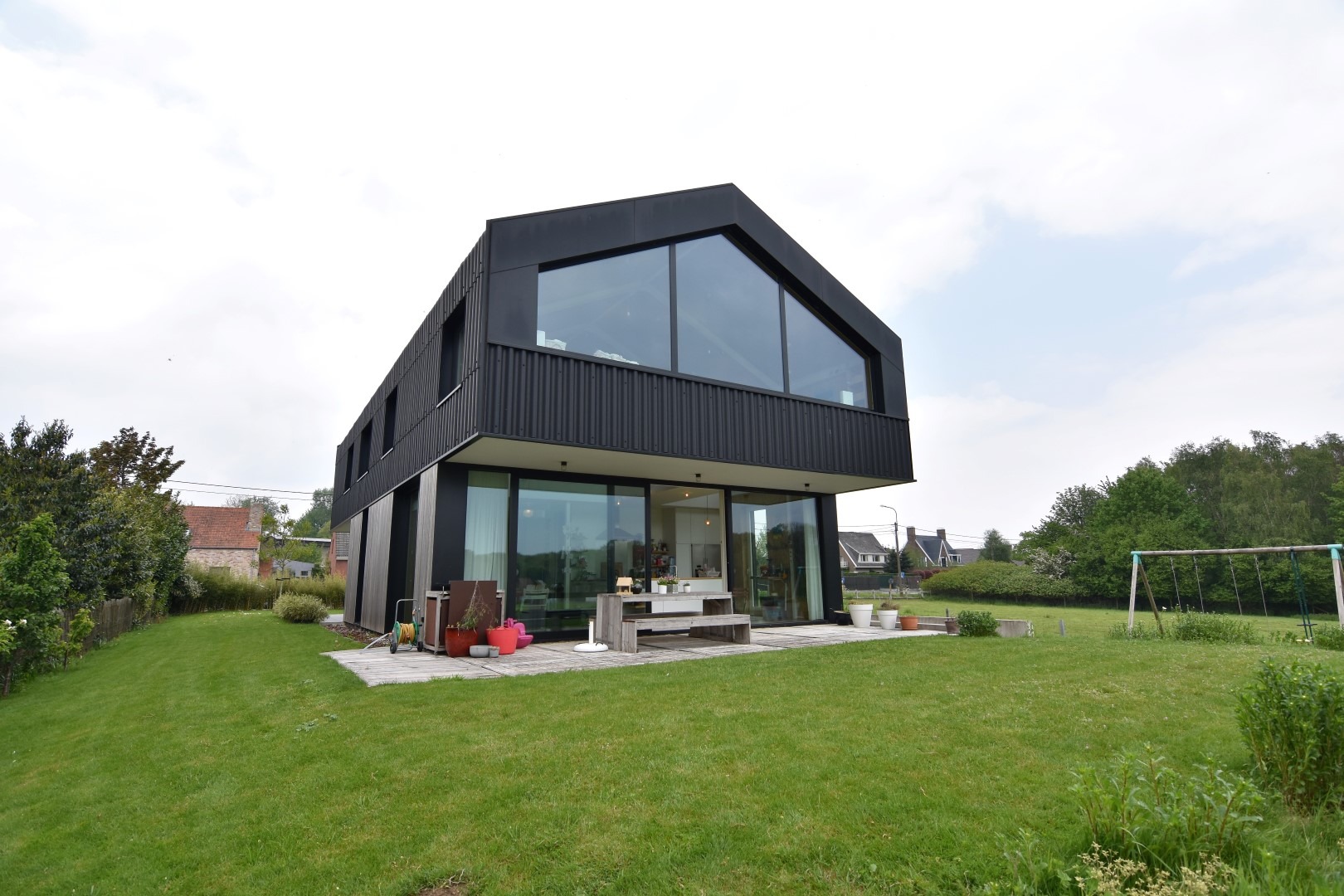 Genieten van de mooie zichten, doe je ook vanop het grote terras, omgeven door een mooie landschapstuin.